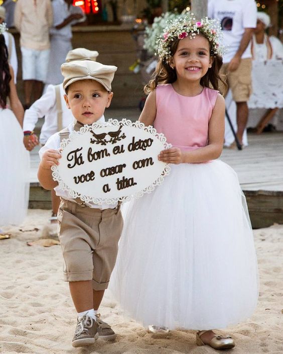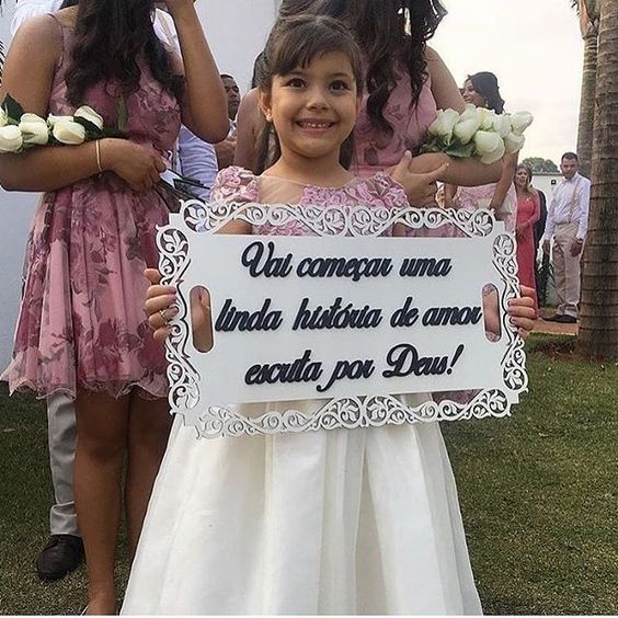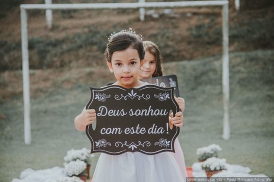 Sabemos que as plaquinhas não são unanimidade. Eu mesma não tive plaquinhas para os pajens e daminhas, mas foi porque, além de serem poucas crianças, elas tiveram outras funções (florista, dama das alianças e pajens apenas). Então, se você não gosta das plaquinhas, tá tudo certo! Em breve teremos outros posts sobre damas e pajens que com certeza vão lhe agradar!