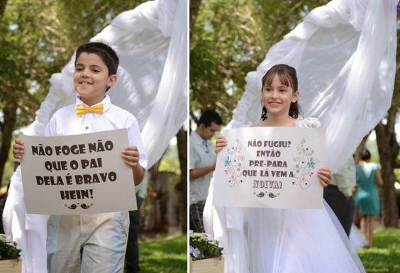 Mas, se você tem muitas crianças e não sabe qual função elas terão, que tal cada uma entrar com uma plaquinha?