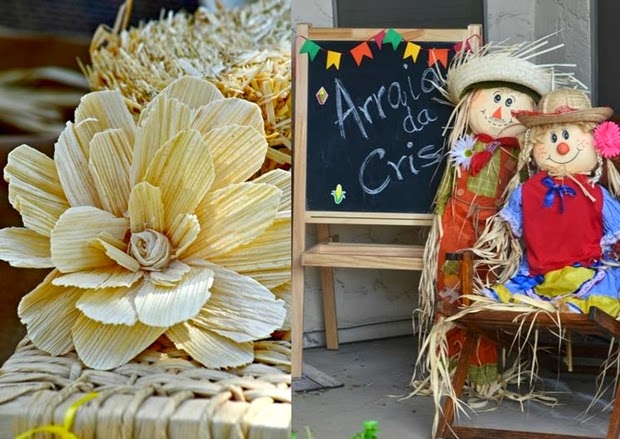 O que não poderá faltar: fitilhos e bandeirolas, tecidos de chita bem coloridos, lanternas, tolha xadrez ou do mesmo tecido de chita.