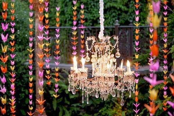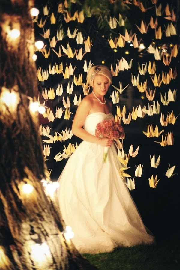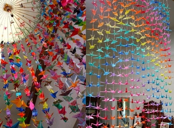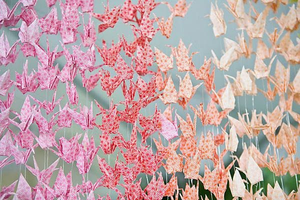 Se não for possível fazer os mil tsurus, faça menos, uma cortina, guirlandas, marcadores de lugares, apenas um sobre o guardanapo de cada convidado…enfim, como a sua criatividade permitir.