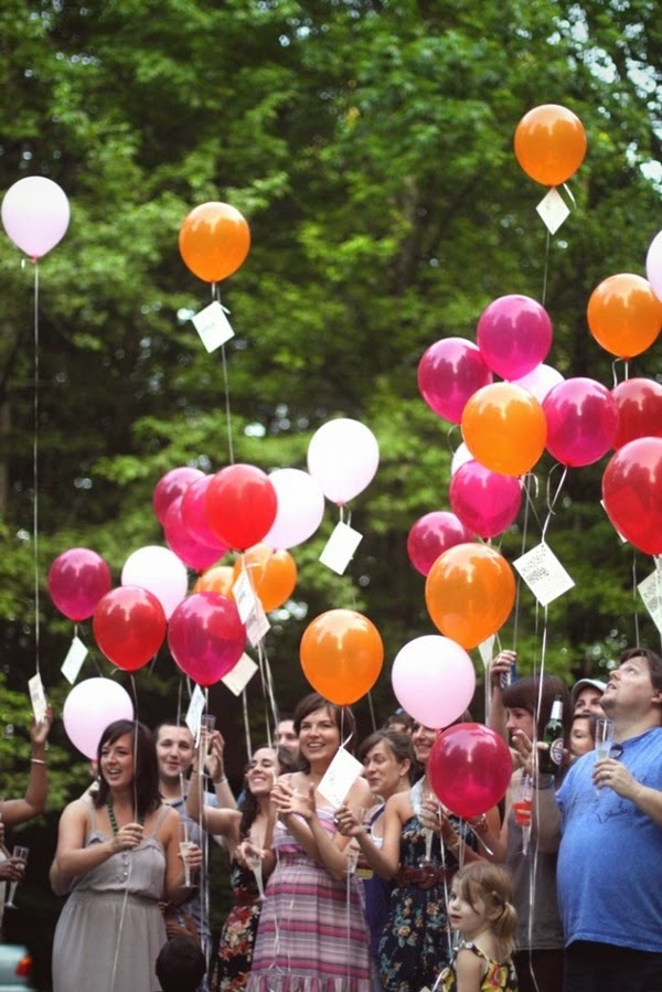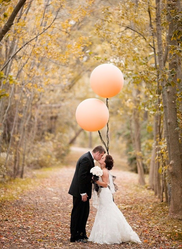 Por hoje ser um dia tão especial e lindo, queria postar algo que remetesse à festas, felicidades, aniversários, e lembrei dos balões, que hoje não se restringem mais apenas às comemorações de aniversários (em especial os infantis), mas eles invadiram de vez os casamentos, deixando as fotos lindas, alegres e divertidas.