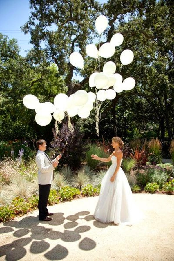 Por hoje ser um dia tão especial e lindo, queria postar algo que remetesse à festas, felicidades, aniversários, e lembrei dos balões, que hoje não se restringem mais apenas às comemorações de aniversários (em especial os infantis), mas eles invadiram de vez os casamentos, deixando as fotos lindas, alegres e divertidas.