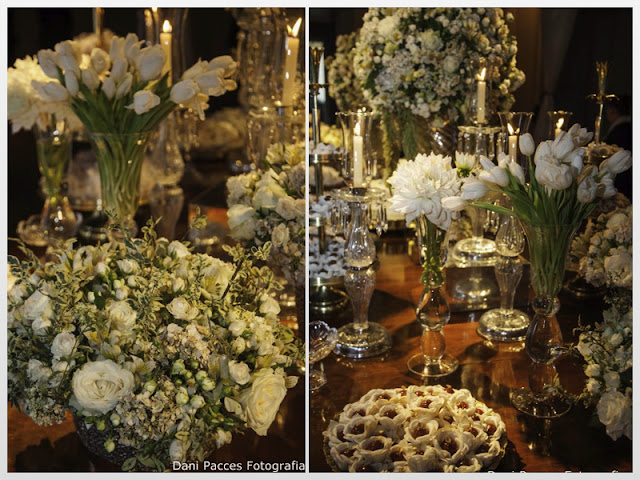 Adoro muita flor e muitos lustres. Com o branco, a atmosfera obtida ficou leve, delicada e refinada!