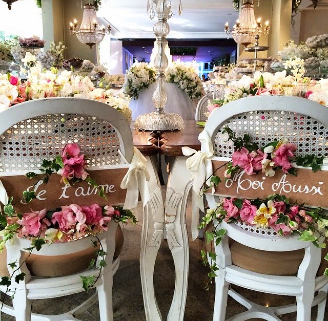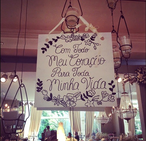 Destaque para as plaquinhas com dizeres super românticos, que logo na entrada já encantavam os convidados.