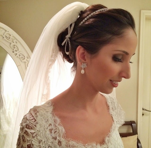 A noiva, Amanda, estava linda com um vestido perfeito by Lucas Anderi, tiara Malcade e brincos maravilhosos de Deise Aviz.