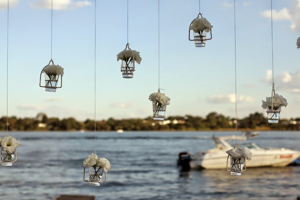 Andreia chegou de lancha ao local da cerimônia religiosa. O pajem entrou para entregar as alianças em um carinho de controle remoto. Tantas coisas diferentes e criativas que os convidados ficaram mais do que surpresos.