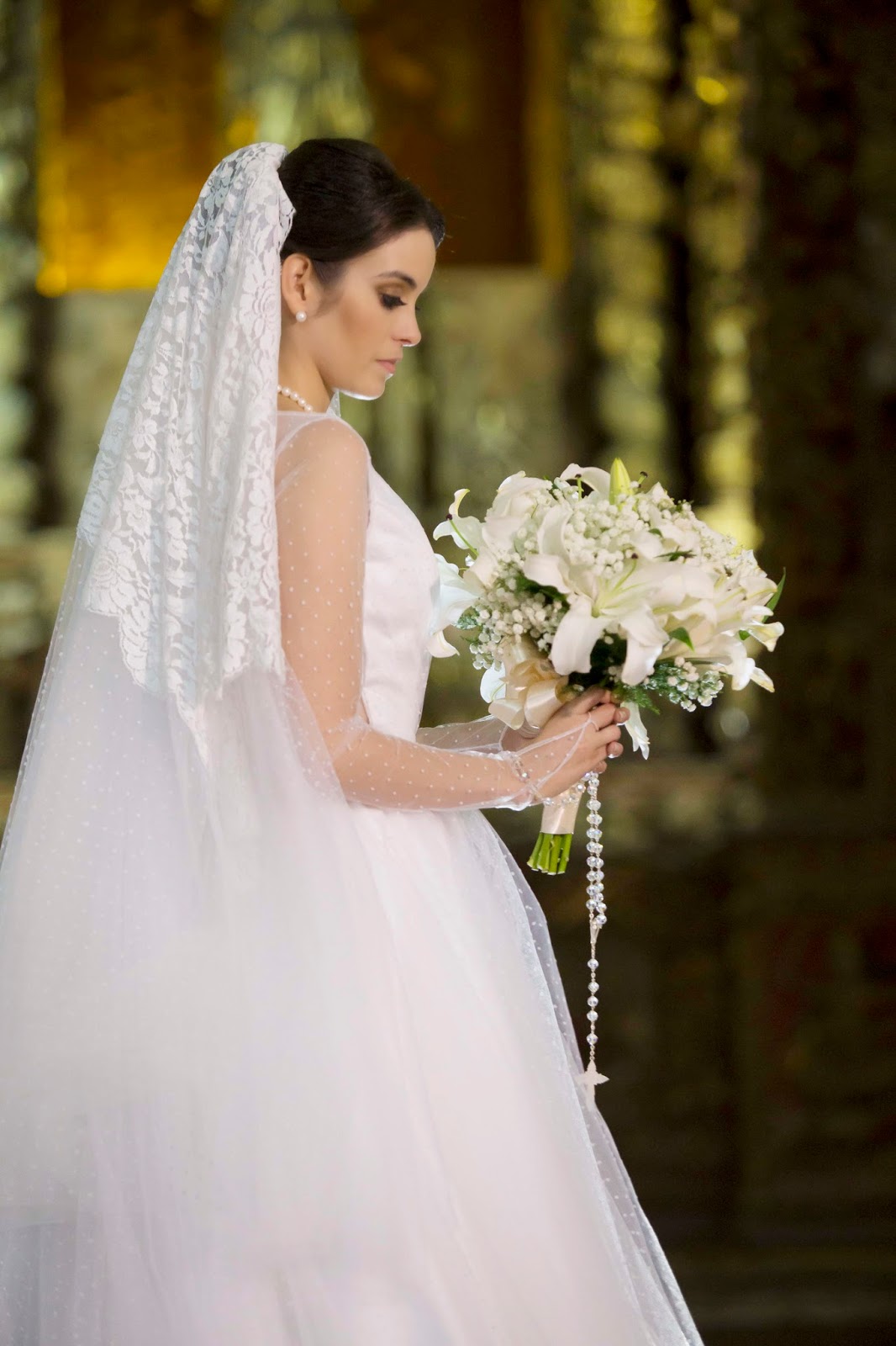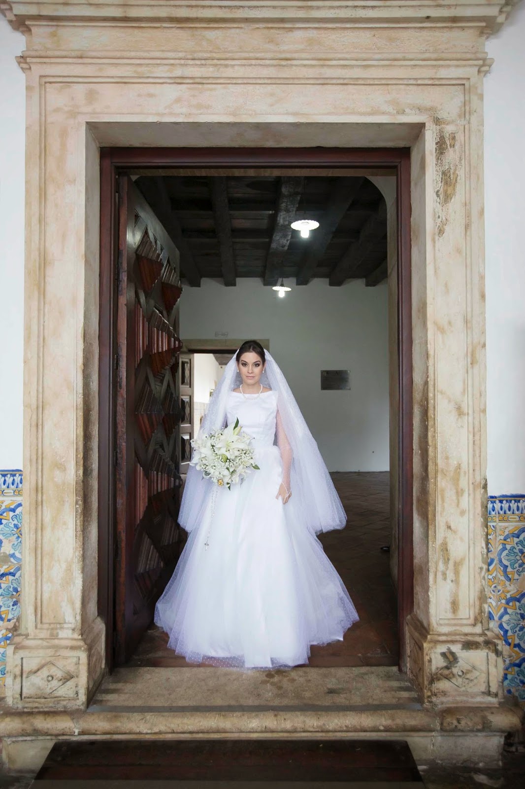 A noiva usou dois vestidos. Um para o dia do casamento civil seguido da festa e outro para a cerimônia religiosa, que mostro abaixo.