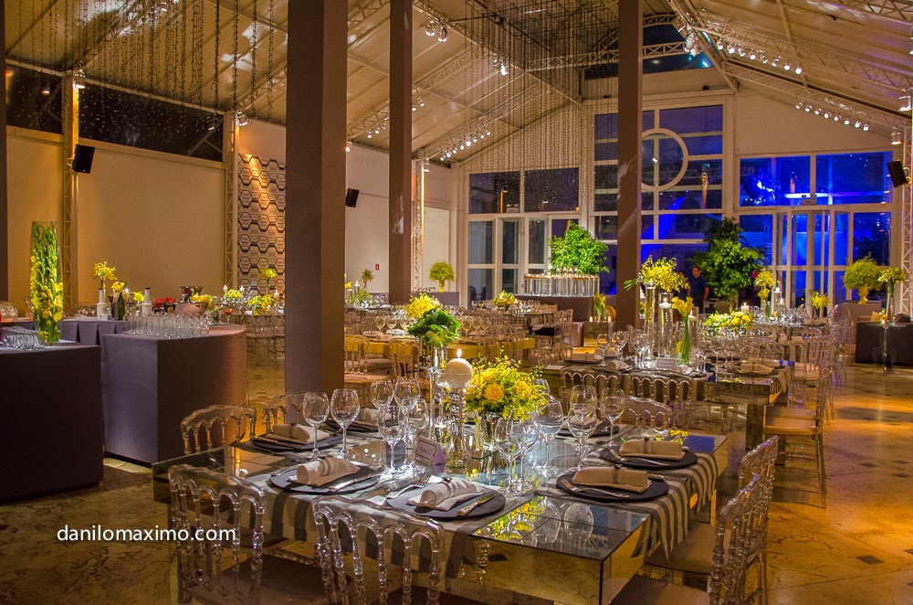 Os festejos continuaram com a recepção no Buffet La Luna onde o amarelo foi a cor eleita com toques de marron. Decoração desenvolvida por Renata Salvadego