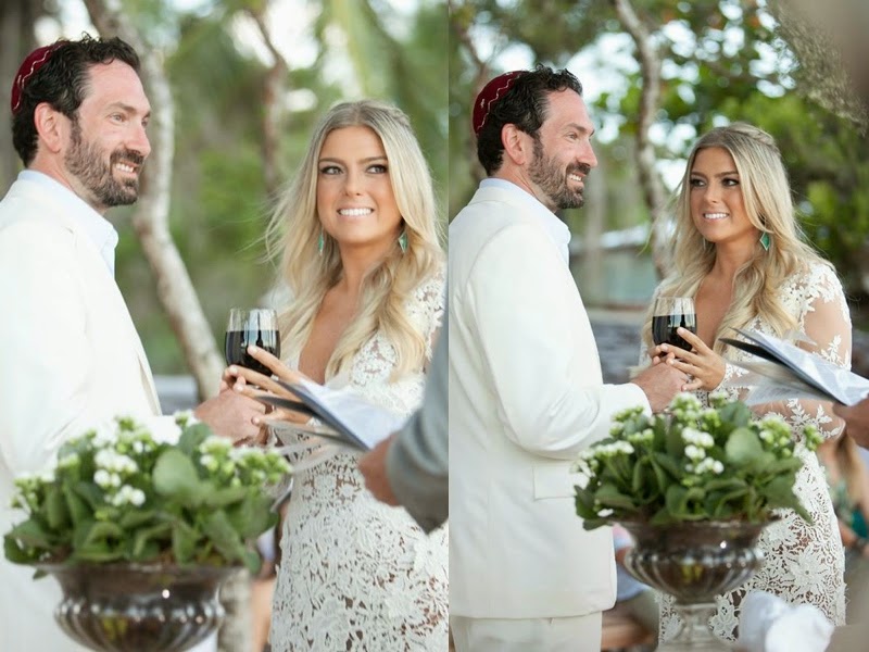 A cerimônia ecumênica, a noiva é católica e o noivo judeu, aconteceu na Pousada Bahia Bonita, em Trancoso, de frente para o mar, com trilha sonora comandada pelo também padrinho Guga Guizelini ao lado do DJ Marcelo Botelho.