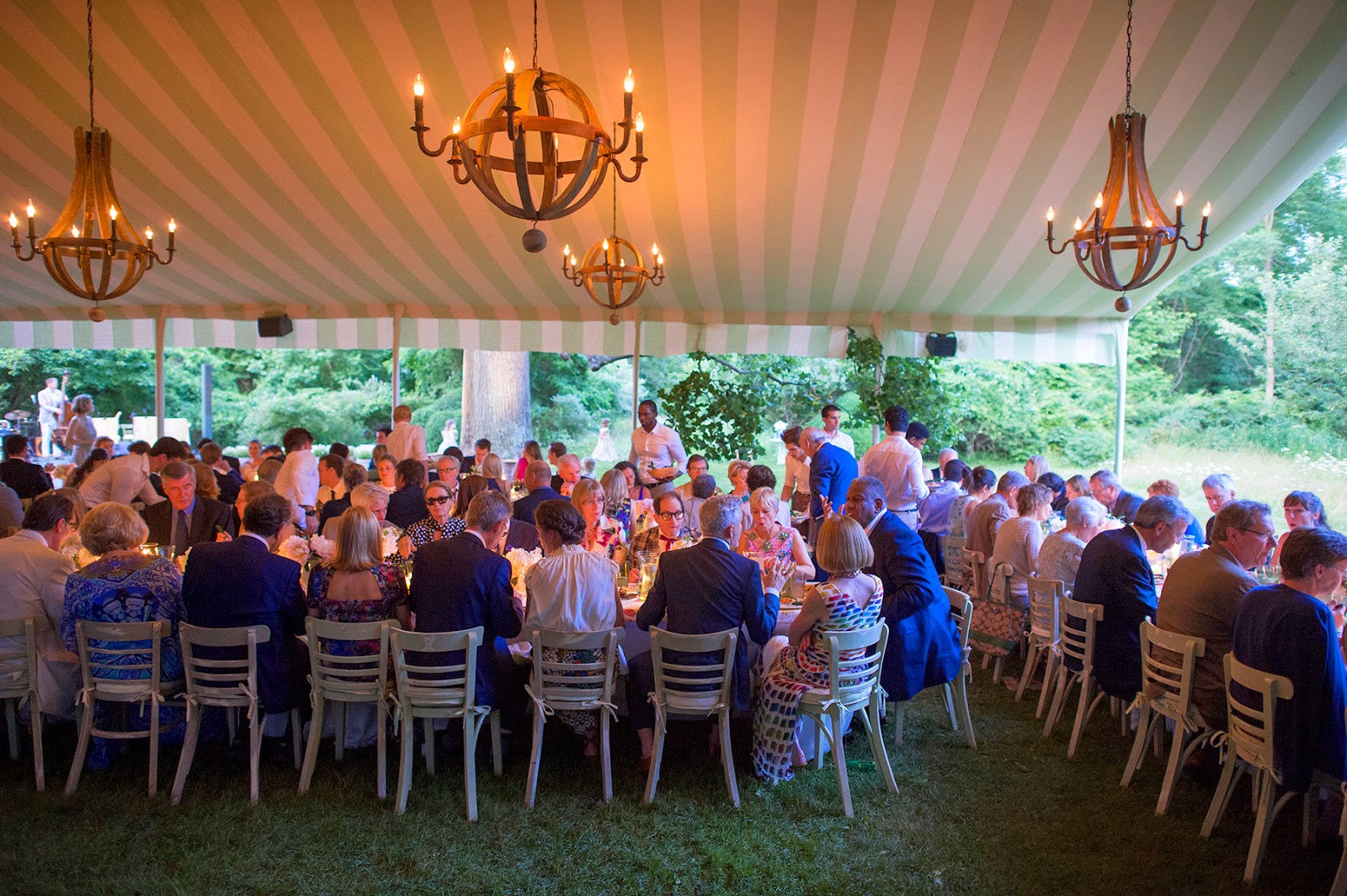 “Era tão importante para nós que o nosso casamento acontecesse com a presença da família e amigos íntimos. Raúl Ávila e sua equipe projetaram uma bela cobertura verde listrada para o nosso jantar” revelou a noiva para a revista Vogue americana.