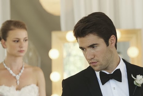 Antes do casamento na série, o casal realizou um ensaio para a revista em que Daniel é editor. Neste ensaio, Emily usou um vestido lindo e exuberante, da estilista Monique Lhuillier. Já no casamento, o vestido foi mais discreto, e o look complementado por um véu catedral com as bordas em renda, lindo! Ambos os vestidos foram tomara que caia. A sogra má, como vocês verão, estava impecável como sempre, assim como o Nolan e claro, o Daniel.