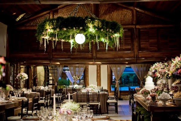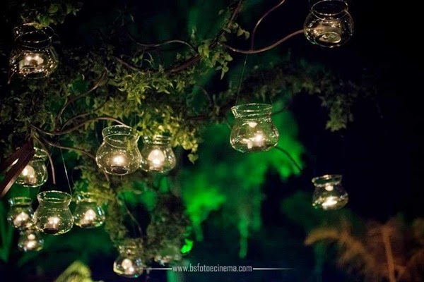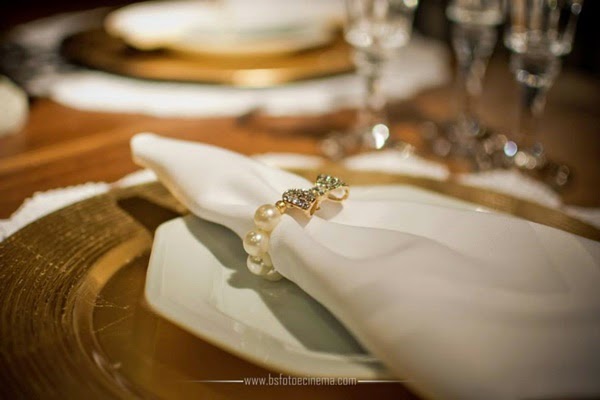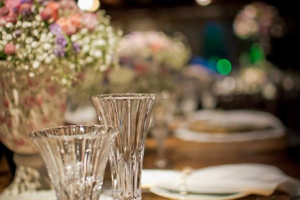 As sócias da Brunello Eventos (Liliane Brunello e Cíntia Ferraz) fizeram os porta guardanapos da mesa dos noivos com pérolas e lacinhos de strass (e depois, fofas, nos presentearam com eles), capricharam na decoração do lustre do salão principal, com folhagens, flores e pérolas (as pérolas também estavam presentes nos arranjos florais das mesas) e criaram ambientes aconchegantes em diversos cantinhos do sítio.