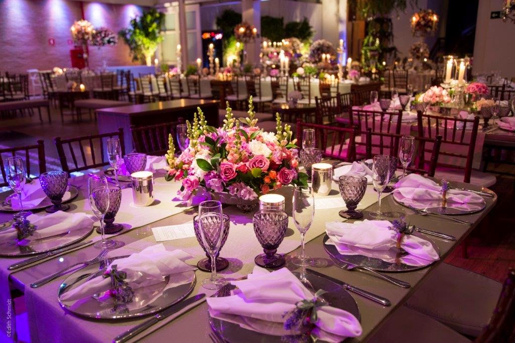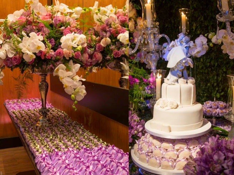 Realizada no Espaço Trivento pela decoradora e organizadora de eventos Cristiane Pileggi, a decoração está de tirar o fôlego. Em tons de rosa e lilás com arranjos florais altos, transbordando de flores maravilhosas do André Pedrotti, com castiçais de cristais, muros de heras, lounges formatados com móveis da Festah , com direiro a fonte e muitas mesas comunitárias, mesas quadradas forradas com toalhas estampadas de rosas que eu amei, outras com caminho de mesa.