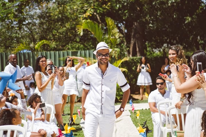 DRESS CODE: Todos de branco!! Todo mundo fazia uma cara muito engraçada quando eu falava isso!kkk. O branco significa paz, pureza e espiritualidade e era isso que eu queria. Me inspirei também na boda Ibicenca muito comum na Espanha. Expliquei todo o motivo pra os meus convidados no meu site www.alineevictor.com