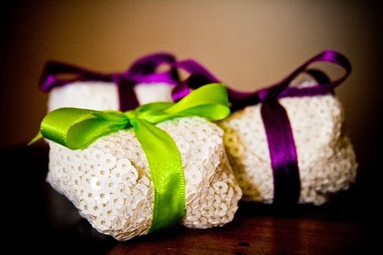 Bem casados embalados em paetê, um luxo!