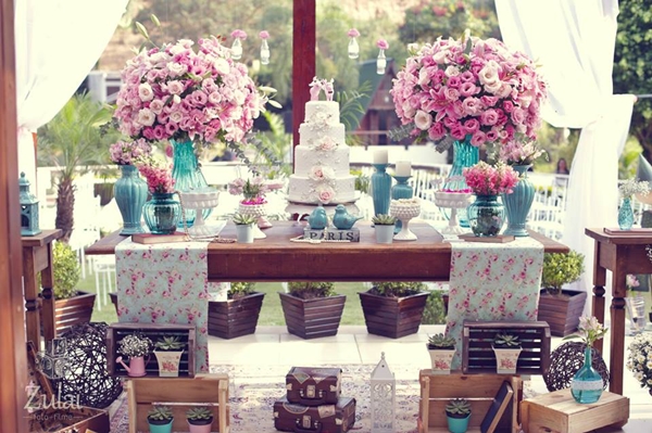 Confira agora as fotos dessa decoração encantadora, nas cores azul tiffany + rosa.