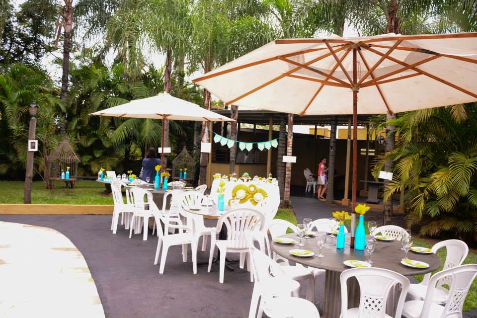 O chá aconteceu em Londrina, no Paraná, na beira de uma piscina. Preparem a pastinha de inspirações!