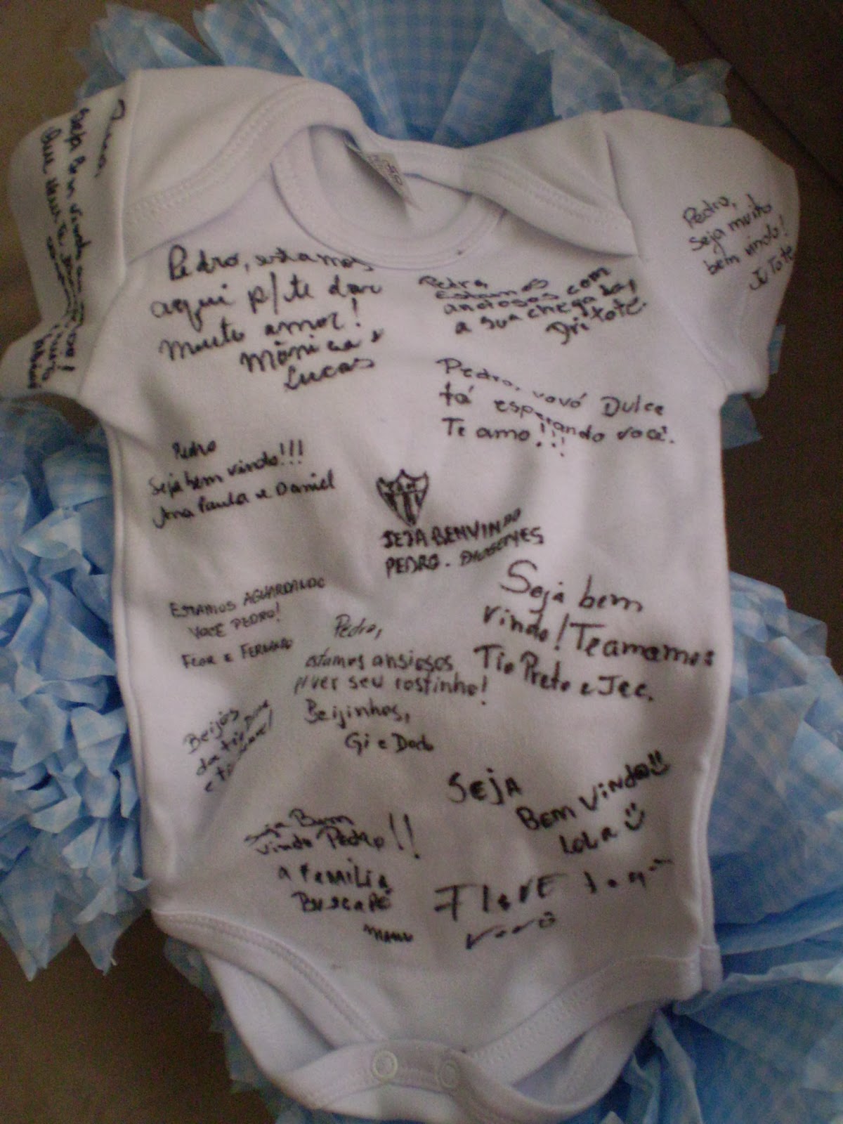 Também deixei a disposição dos convidados um body para escrever uma mensagem de boas vindas para o Pedro.
