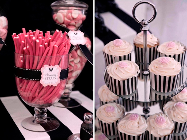 Que tal decorar o seu chá de lingerie com a paleta de cores: preta + pink complementado pelas listras em preto e branco? Vai ficar lindo!