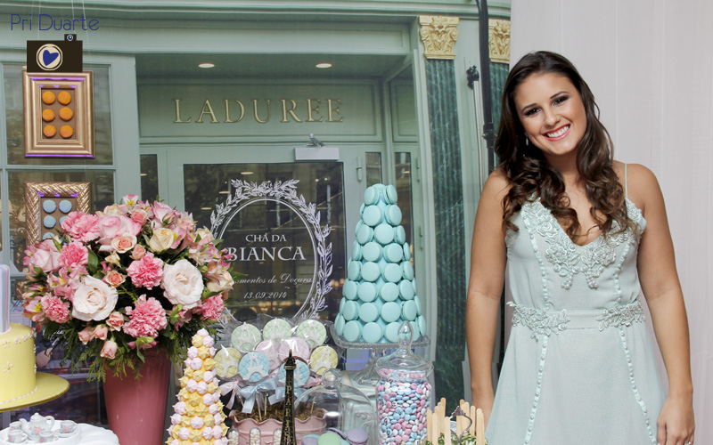 Hoje eu irei mostrar para vocês o Chá de Panela da Bianca, inspirado na Ladurée, famosa confeitaria francesa que caiu nas graças do mundo todo com seus macarons pra lá de saborosos. Quem teve a missão de reproduzir a patissèrie no Chá de Panela foi a nossa super parceira Mparaiso, que arrasa quando o assunto é decoração de eventos intimistas! Aliás, criatividade e bom gosto na ambientação de festas é com ela mesmo! Com um talento indiscutível e amor pelo que faz, a Mari mergulha nos projetos de suas clientes e viaja juntamente com elas na ideia de fazer algo bacana e diferenciado.