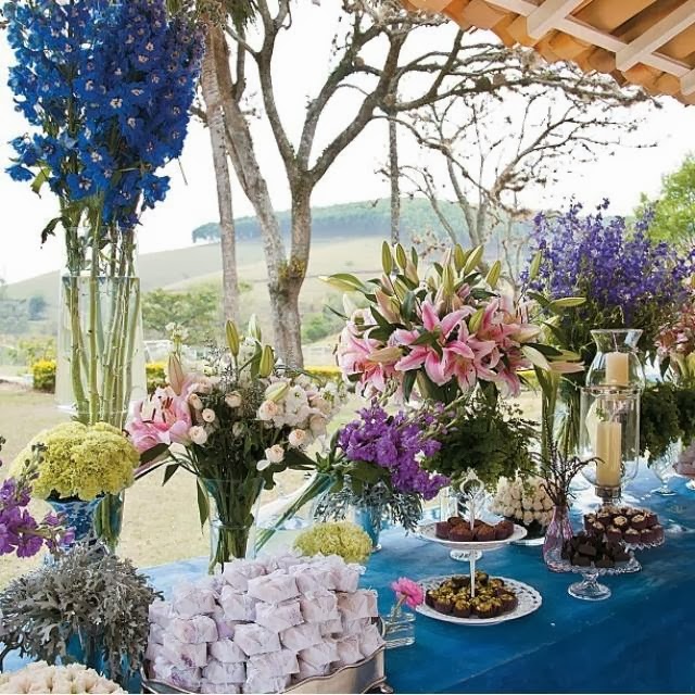 Renata Salvadengo assina esta decoração de mesa maravilhosa. Perfeita para um casamento ao ar livre. Contrastes entre o colorido das flores e as cores da paisagem. Eu amei e vocês?  Foto Caio Galucci.