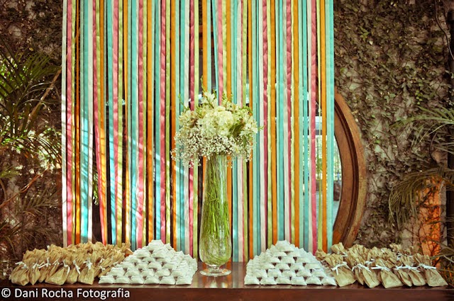 Hoje venho falar de uma super tendência para decoração de chás, cerimônias e decorações ao ar livre. A decoração com fitas. além de poder ser feita por você mesma, dá um efeito lindo e colorido à sua festa.