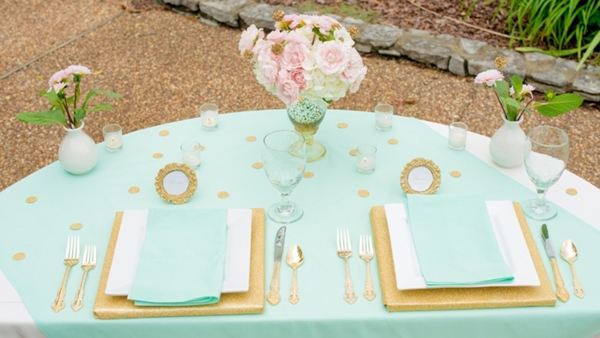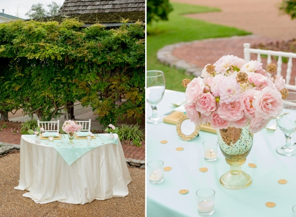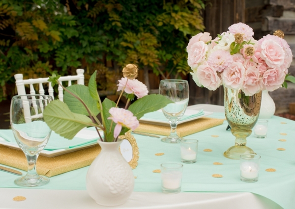 A combinação das cores verde mint + rosa blush + dourado é perfeita para eventos durante o dia, e é super original e diferente. Ela é perfeita para quem tem medo de usar o dourado em casamentos diurnos.
