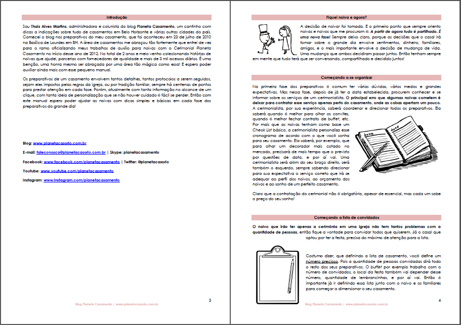 Como disse anteriormente, é um mini guia para as noivas que traz dicas para cada categoria de fornecedores do seu casamento. Essas dicas foi baseada em todos nossos artigos aqui do blog, e também no livro “Casamento sem Frescura” da Cláudia Matarazzo…