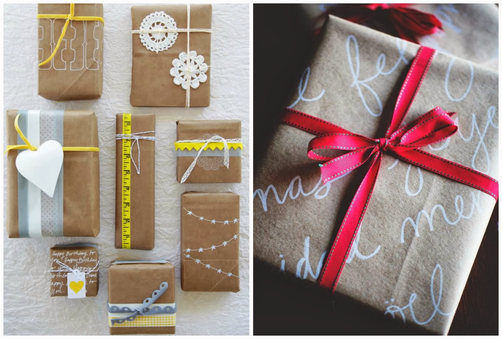 Minha ideia preferida é usar o papel craft na hora de embalar o presente. Dá para colocar a imaginação para trabalhar e compor embrulhos lindos, diferentes e especiais. O papel craft ou papel pardo é muito parecido com aquele velho e conhecido papel de padaria, no qual coloca-se o pão. É fácil de achar (lojas de embalagens) e muito, muito baratinho. Vendem em rolos ou em folhas. Para vocês terem uma ideia, comprei uma folha grande que dá para embalar 02 presentes médios ou 01 bem grandão por apenas 30 centavos.