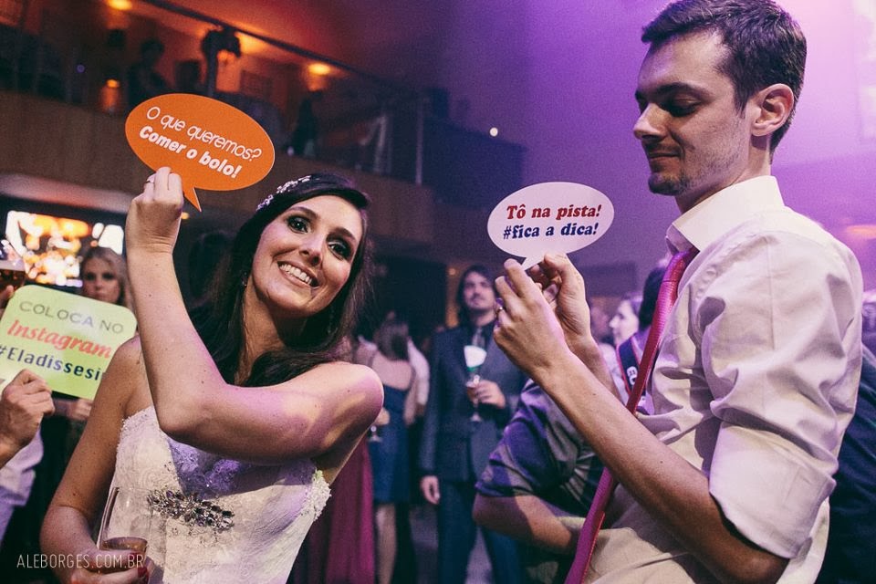 Somos muito ligados à tecnologia, iPhone, instagram, etc..rs.., portanto, fizemos algumas coisas modernas em nosso casamento, que as pessoas amaram!