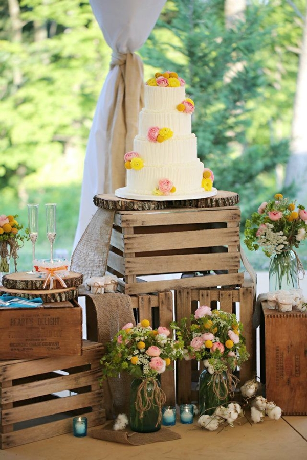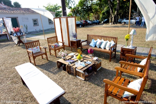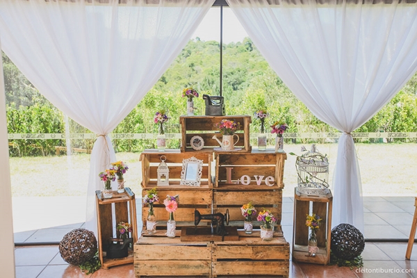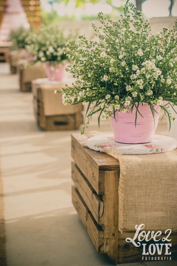 E não há como se pensar em casamento rústico sem lembrar deles: os caixotes de feira!