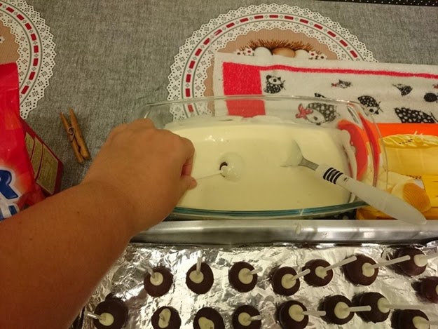 Passe a ponta do palito de pirulito no chocolate derretido antes de colocar na bolinha, isso faz com que o palito não solte depois: