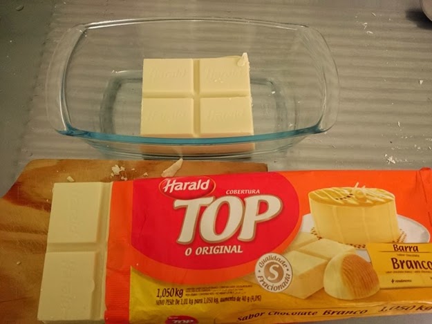 Derreta quatro quadradinhos de uma barra de chocolate de sua preferência: