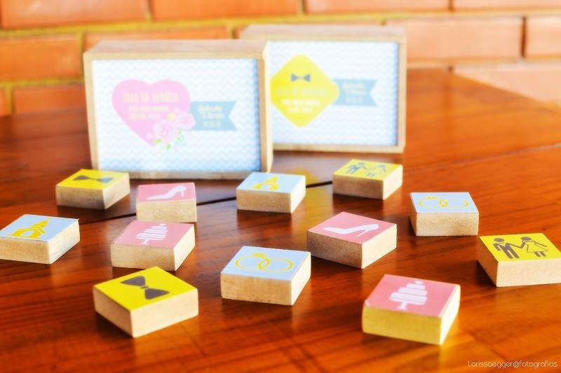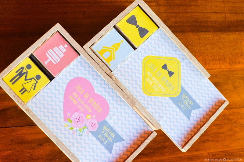 - “Jogo da memória” – Uma opção lúdica, educativa e com muito charme, a caixa com peças personalizadas em MDF servirá não só como uma super lembrança mas também como um entretenimento para os pequenos durante a festa.