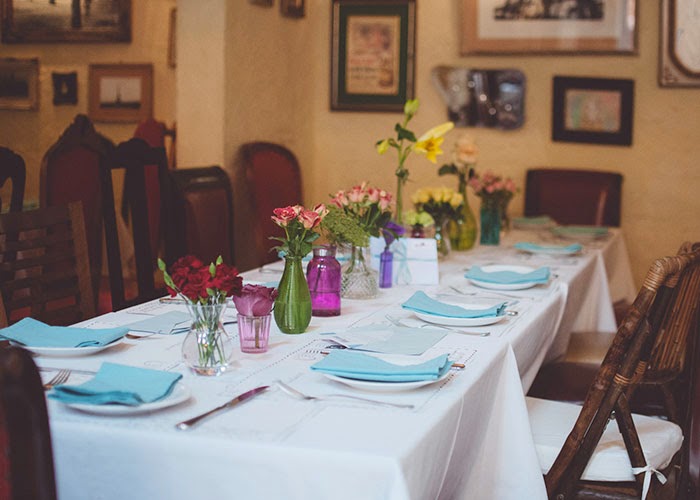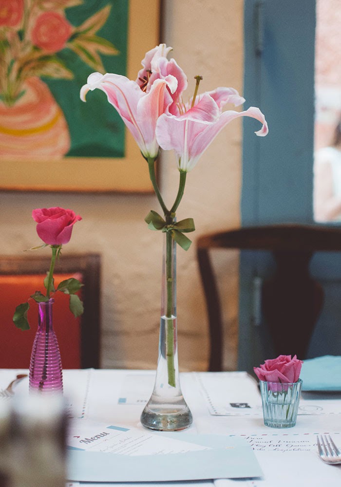 A decoração seguiu basicamente o turquesa e o lilás (e suas variações), que na minha opinião é a combinação mais linda ever! Achei incrível como a Lia introduziu elementos do seu trabalho e paixão: a moda. Foram vidrinhos de perfume, bandejas de prata, revistas de moda, clutches, capinhas de celular e vários mimos do seu dia-a-dia espalhados estrategicamente pelo Bistrô que casou.