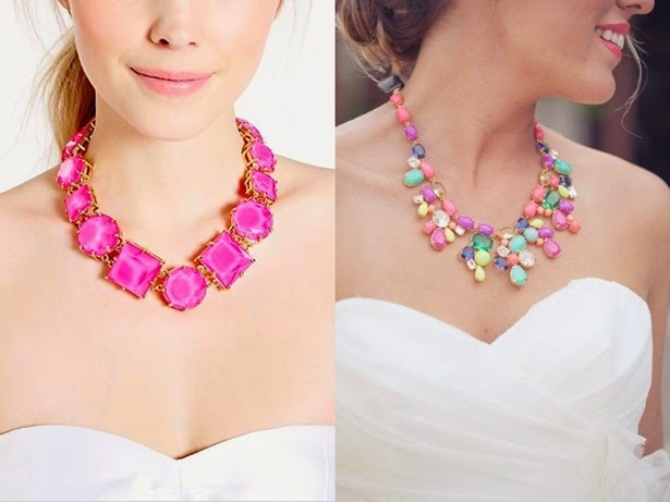 Os maxicolares coloridos são alegres e despojados, e também são perfeitos para as noivinhas que vão casar durante o dia, com um toque a mais de alegria em seu look.