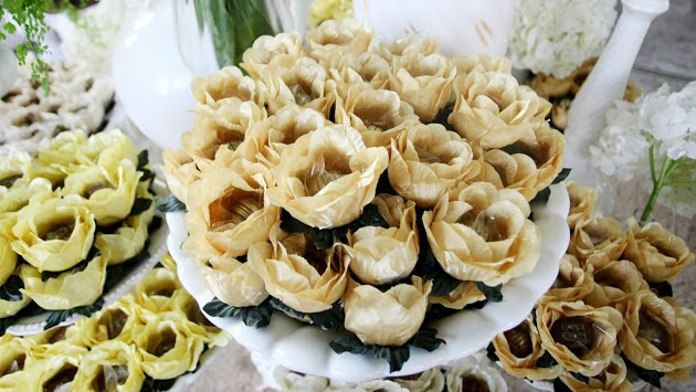 Dica importante 3: Para ter uma mesa cheia gastando menos você pode contratar a quantidade padrão de doces, mas colocá-los em forminhas volumosas como aquelas em formato de flores (em papel, porque as de tecido são mais caras). Segundo o cerimonialista César Serra, doces em forminhas como essa ocupam muito mais espaço e ajudam a deixar a mesa mais cheia.