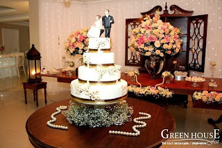 Dica importante 2: Caso você escolha esse estilo mais clássico, certifique-se que seu bolo ou maquete seja mais alto ou da mesma altura que os arranjos de flores, assim o seu bolo não irá sumir entre os arranjos como na foto abaixo.