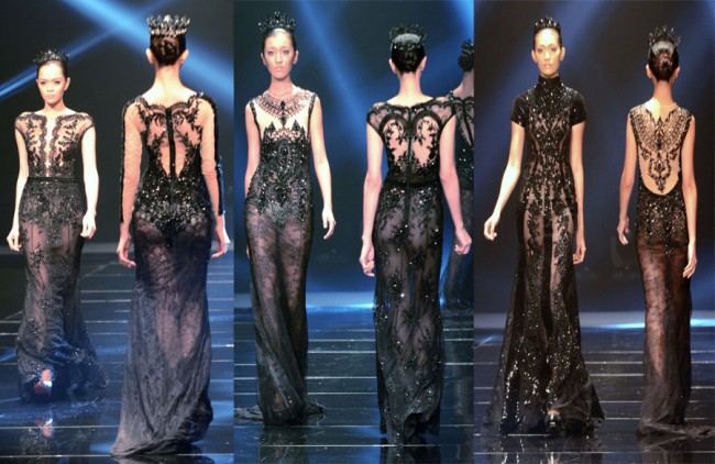 Vestidos pretos by Michael Cinco foram as estrelas do show apresentado este ano, durante a Semana de Moda Filipina, em 22 de maio de 2013. Photo by Peter C. Marquez, InterAksyon.com.