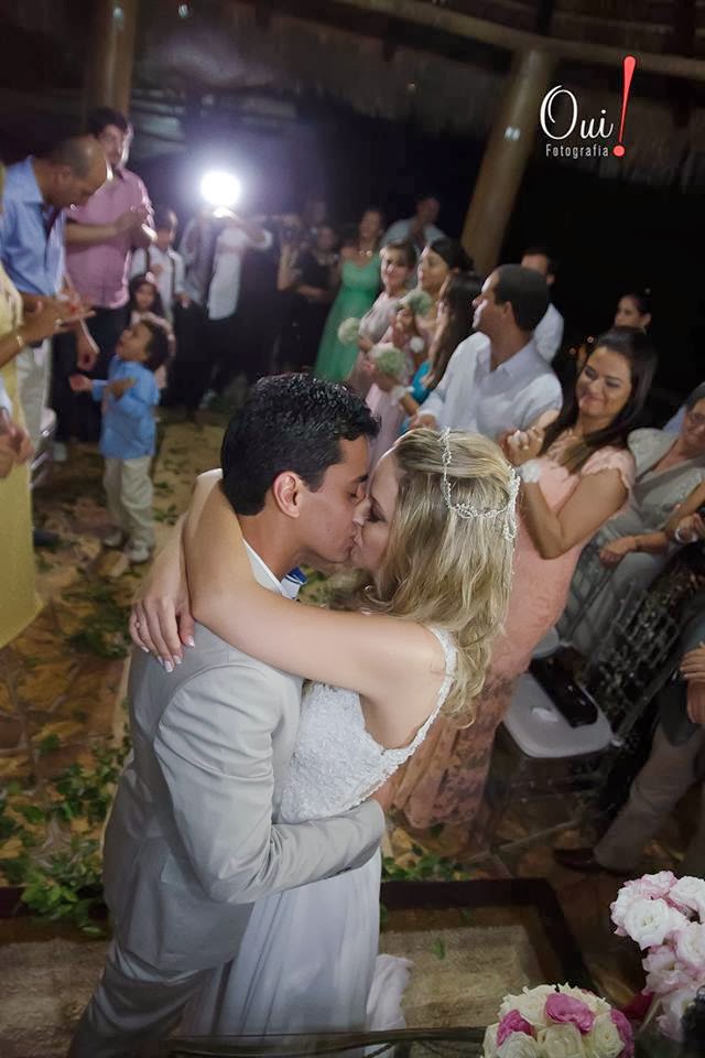 No dia, foi tudo simplesmente perfeito, meu irmão que é pastor celebrou o nosso casamento, minhas três melhores amigas foram minhas damas de honra, nossos sobrinhos foram pagens e damas, minha cunhada cantou uma musica, meu pai falou palavras lindas e claro, estava tudo lindo! Cada detalhe estava do jeito que sonhamos e idealizamos. Valeu a pena todo o esforço e com certeza foi um momento único e abençoado das nossas vidas :)”