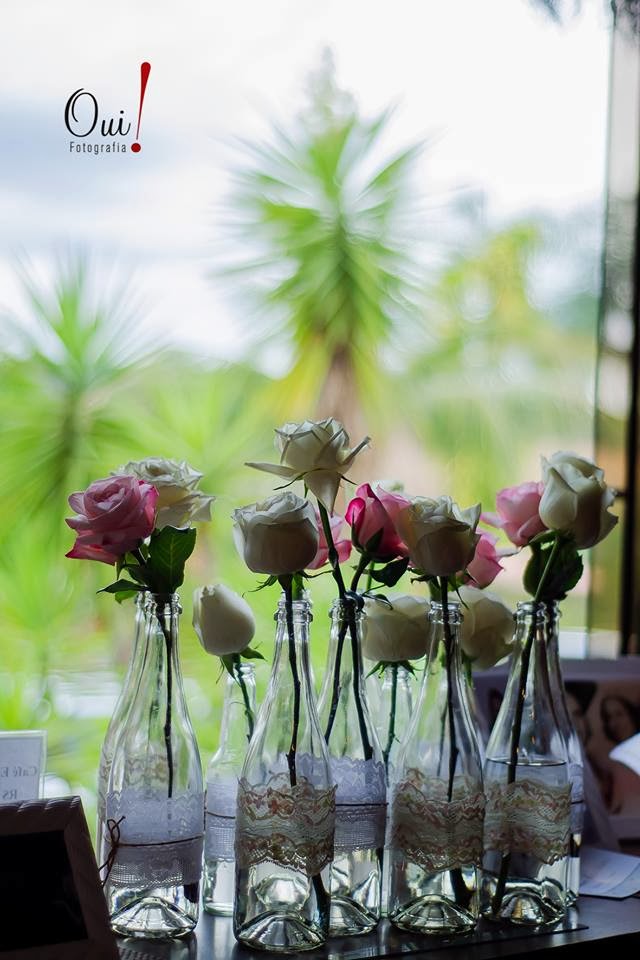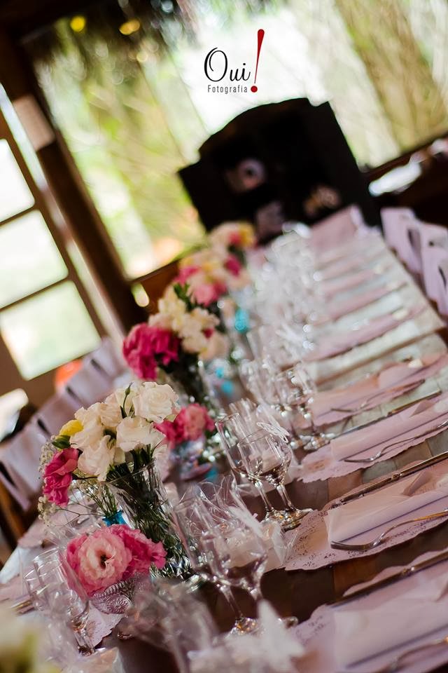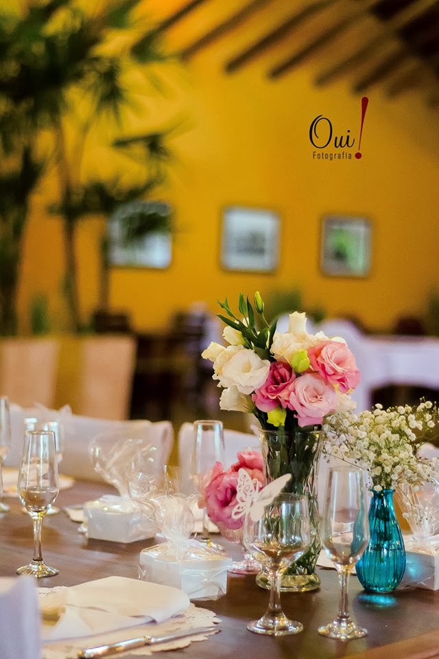 Bom, tomada a decisão, começamos a correr (contra o tempo!!) atrás dos preparativos! Faltavam apenas 6 meses para o casamento e eu não tinha escolhido absolutamente nada!! No fim, acabamos organizando tudo em apenas 3 meses!! Como optei por não contratar decoradora e nem cerimonialista, minha vida virou uma loucura nesses meses, compramos absolutamente tudo, desde vasos para a decoração até esteira para a entrada dos noivos, fora os dias que passei até altas horas da noite fazendo plaquinhas pra foto, decorando garrafa de espumante, colocando doce em potinho de vidro (minha mãe fez uma ambrosia maravilhosa para servirmos), juro, achei que ia surtar!!