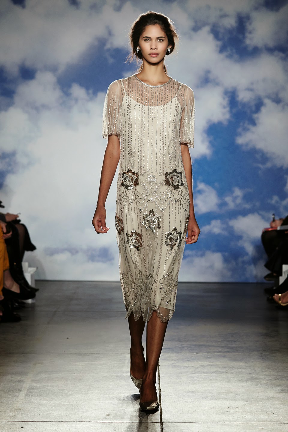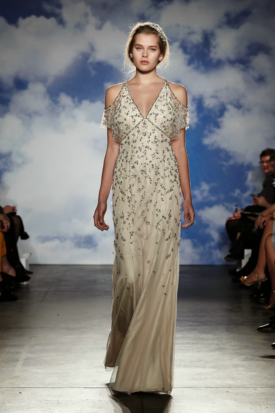Olha só que incrível, achei o máximooo: o desfile de Jenny Packham começou com uma modelo plus size.