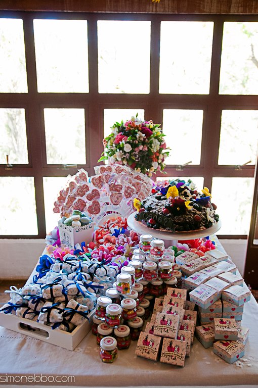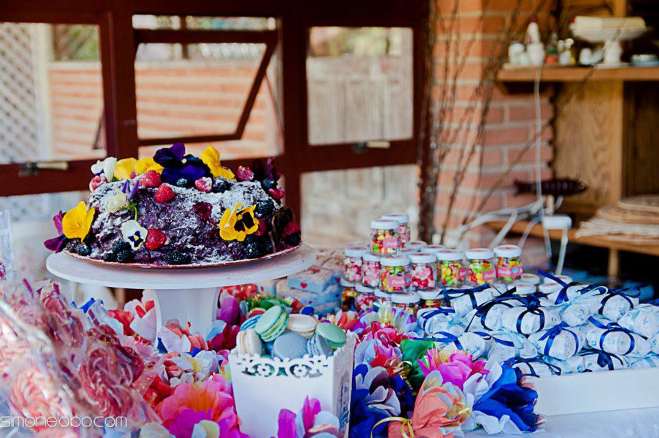 Mesa de doces (Bolo, Bem-casados e Trufas embrulhadas nas flores de papel): Estúdio Abelha (melhor amiga fez o bolo, sogra, os docinhos)