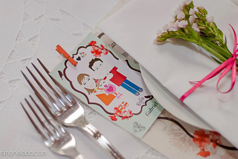Caricatura dos convidados para marcação das mesas+menu: Estúdio Abelha.
