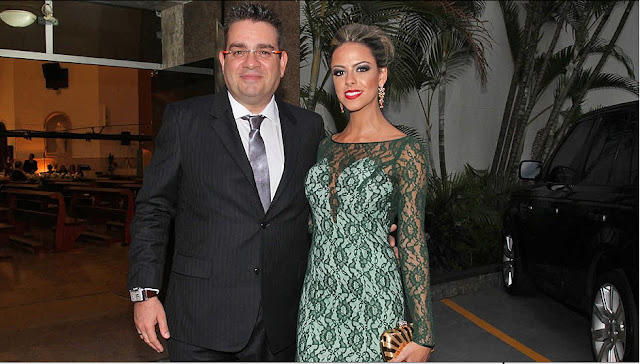 O noivo usou terno preto com colete da mesma cor, assinados por Ricardo Almeida, e gravata branca e uma flor, também branca, na lapela.