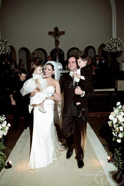 Os noivos saíram muito felizes da igreja carregando os dois filhos da união de seis anos… Assisti ao Pânico na tv (como sempre) no dia que foi exibida a reportagem sobre o casamento e fiquei bastante emocionada com o discurso do próprio carioca a respeito do amor do casal e principalmente da seriedade que significa o compromisso do casamento e da importância da família.