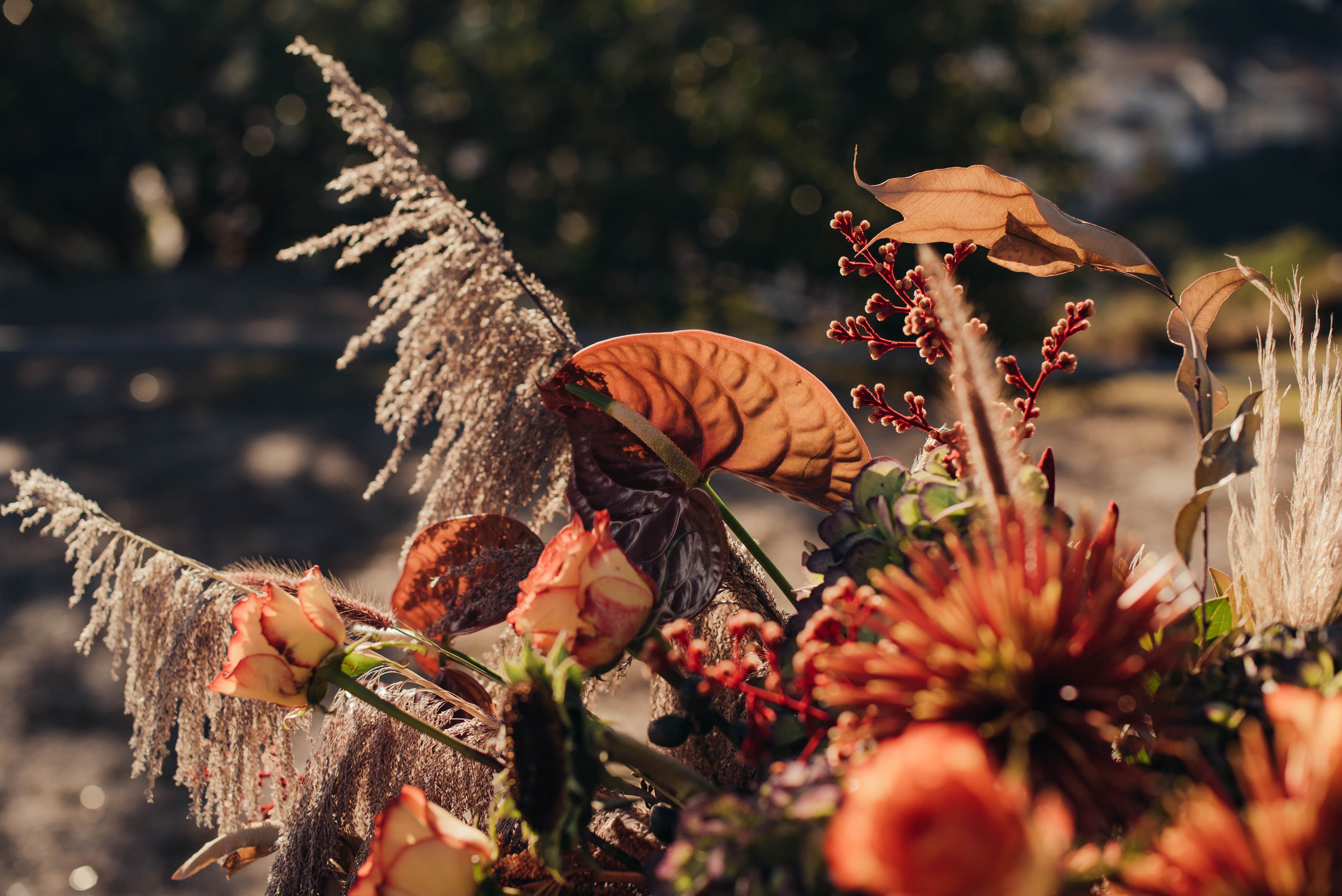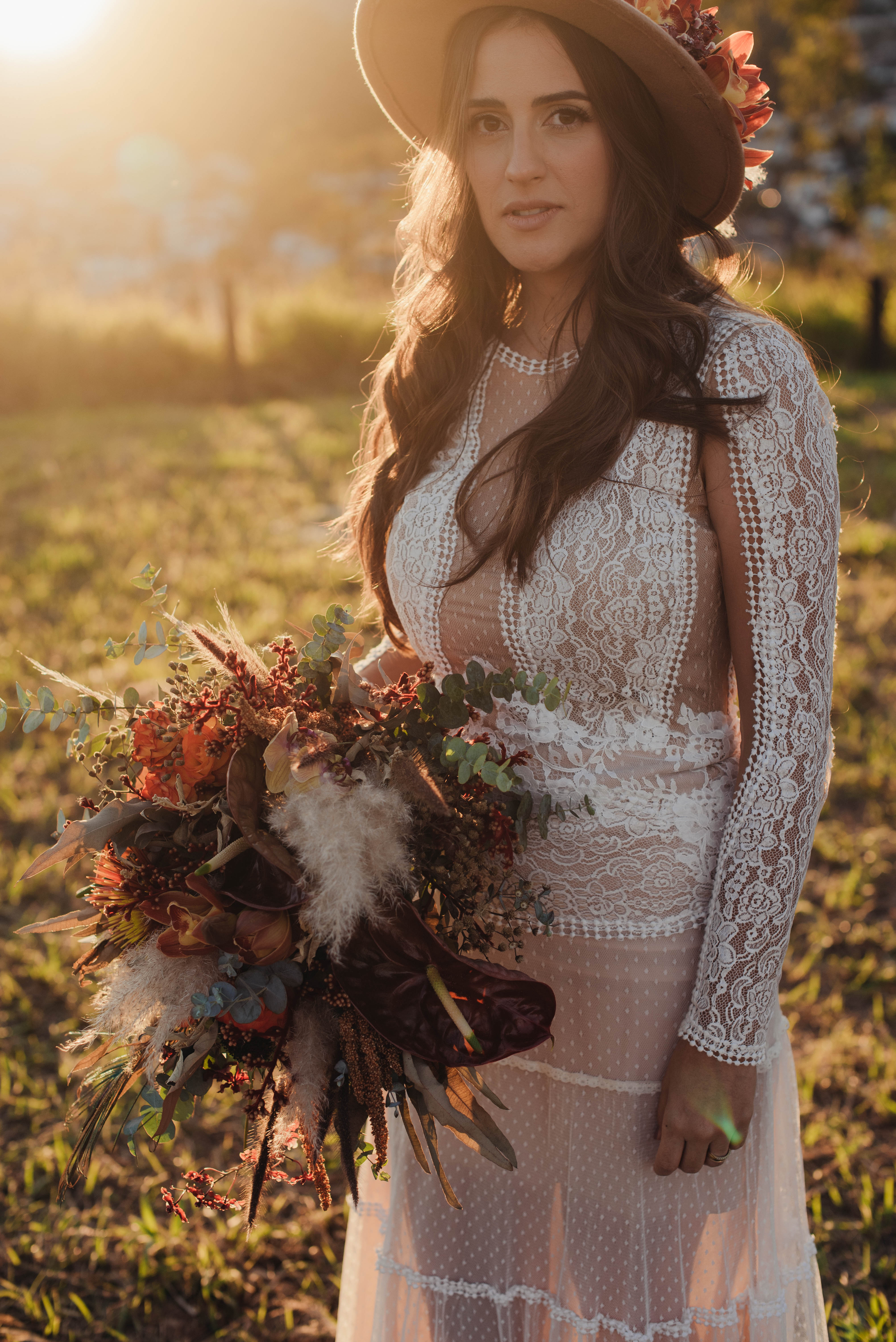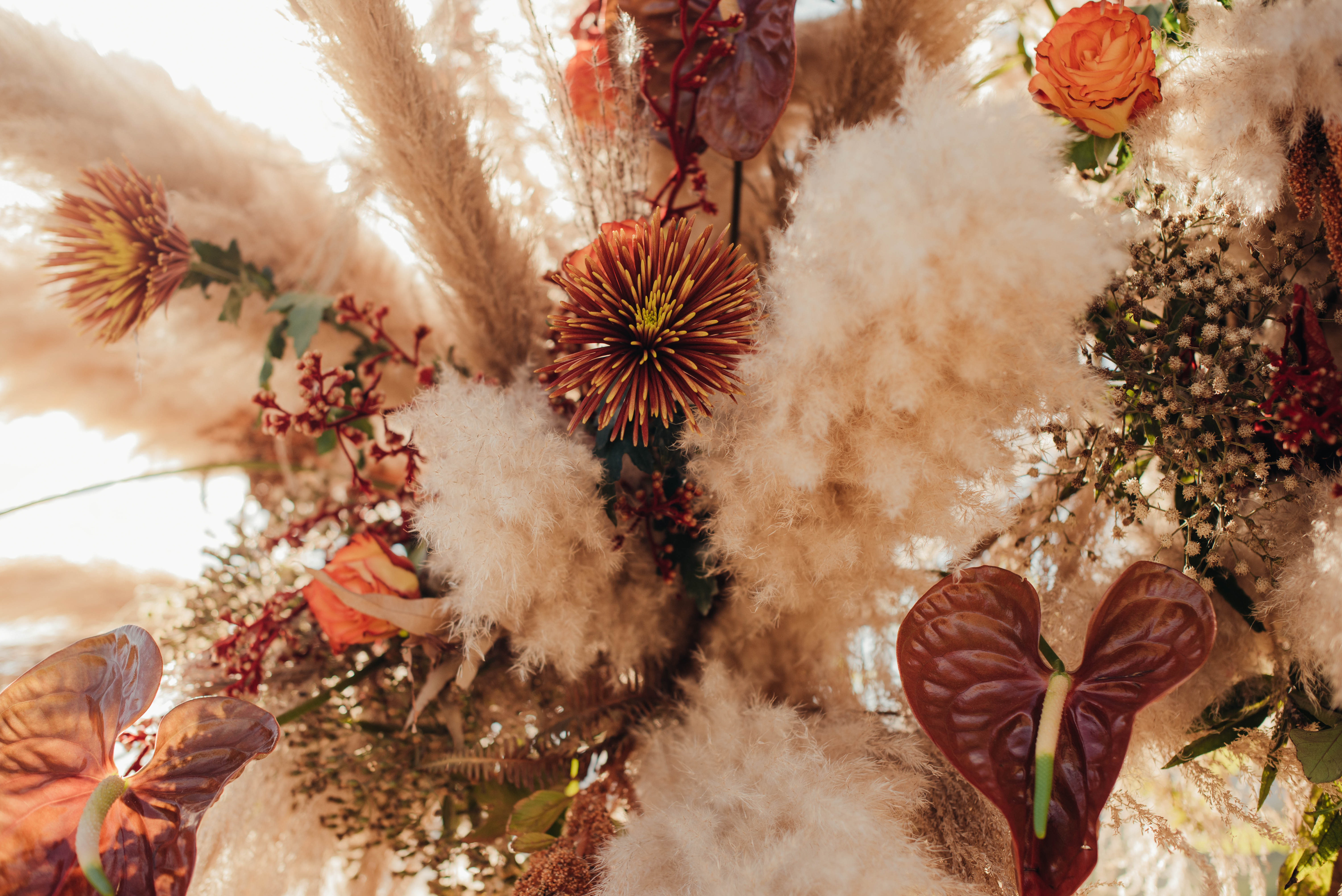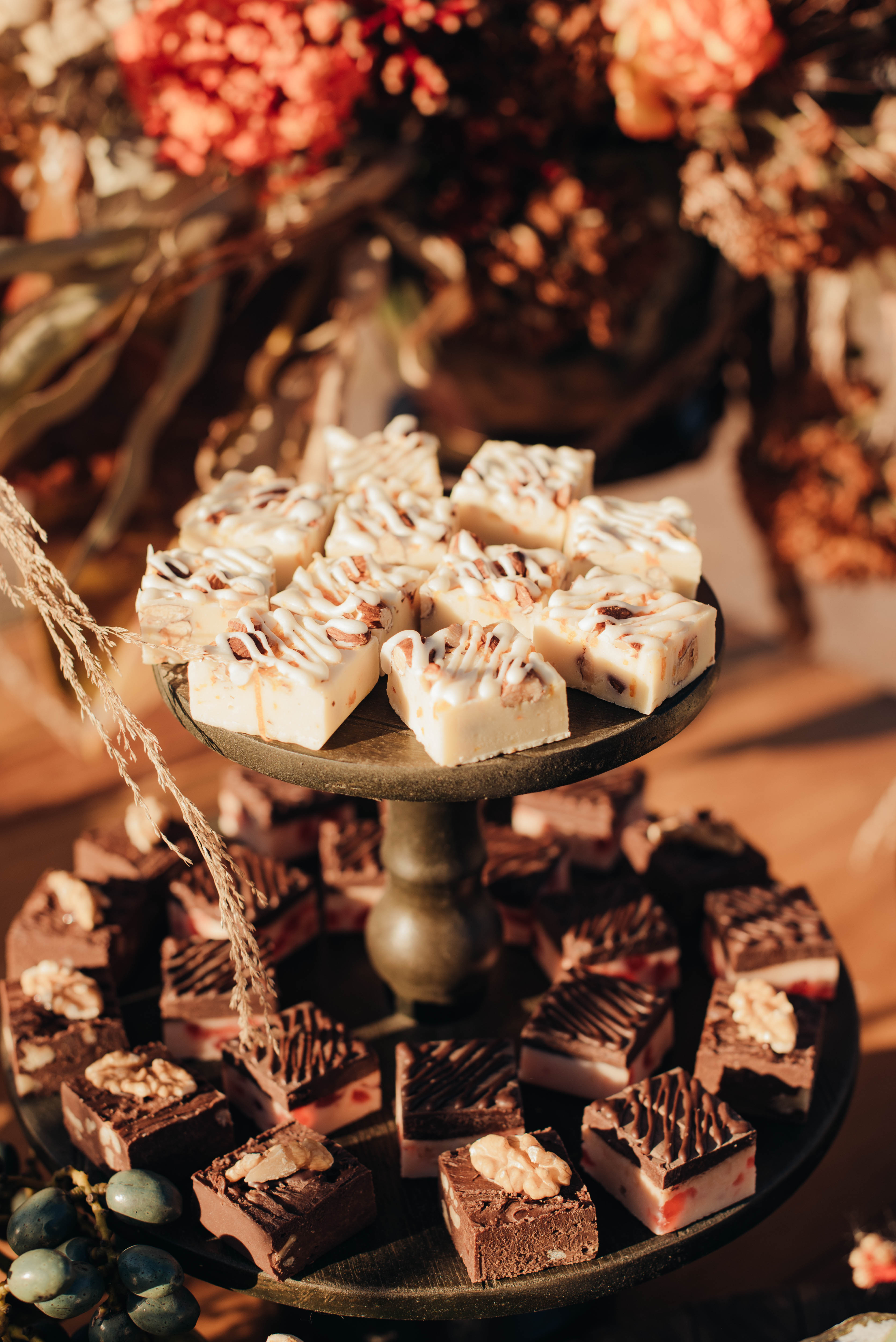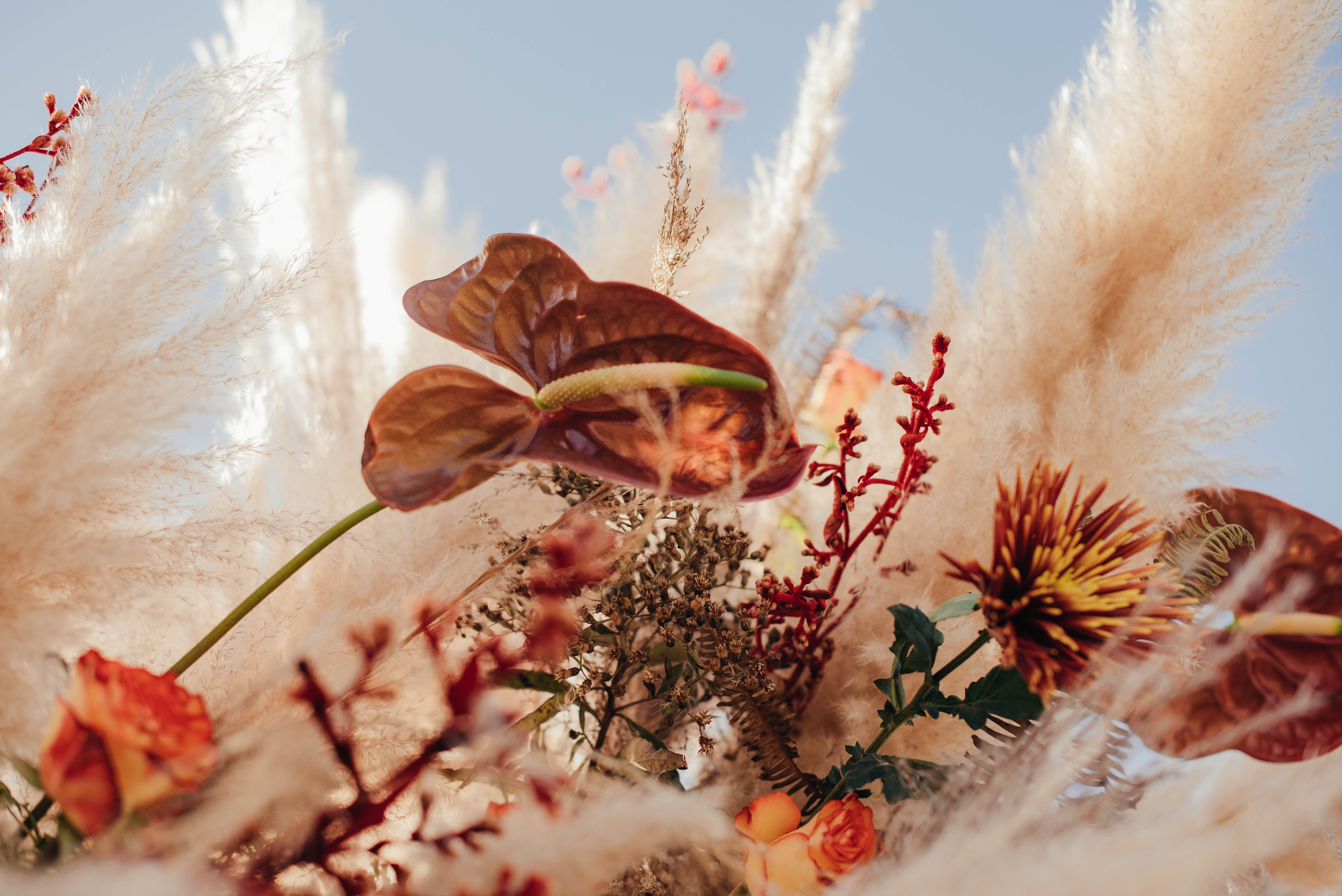 O Gil e o Alexandre (Purpurata Flor e Decor) aproveitaram as cores desse cenário e desenvolveram um projeto lindo em tons de terracota. O backdrop da cerimônia teve tons mais neutros que, combinado à mistura de texturas, só valorizou a paisagem de Ouro Preto e os tons do inverno. Para a mesa posta, os meninos usaram as cores quentes em contraste com um pouco de verde, que valorizou o bolo da Renata Tropia e os doces da Rara Bala Delícia.