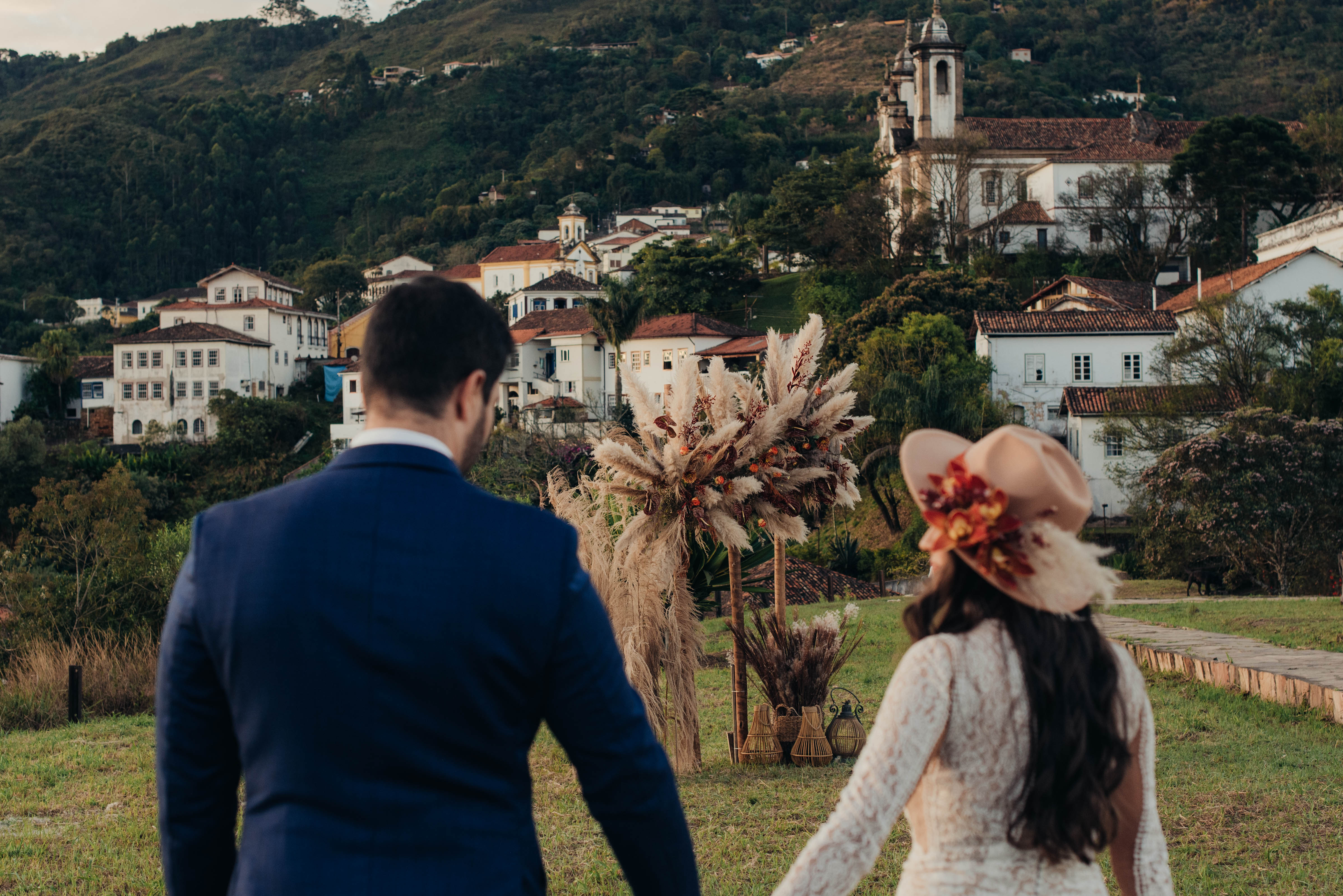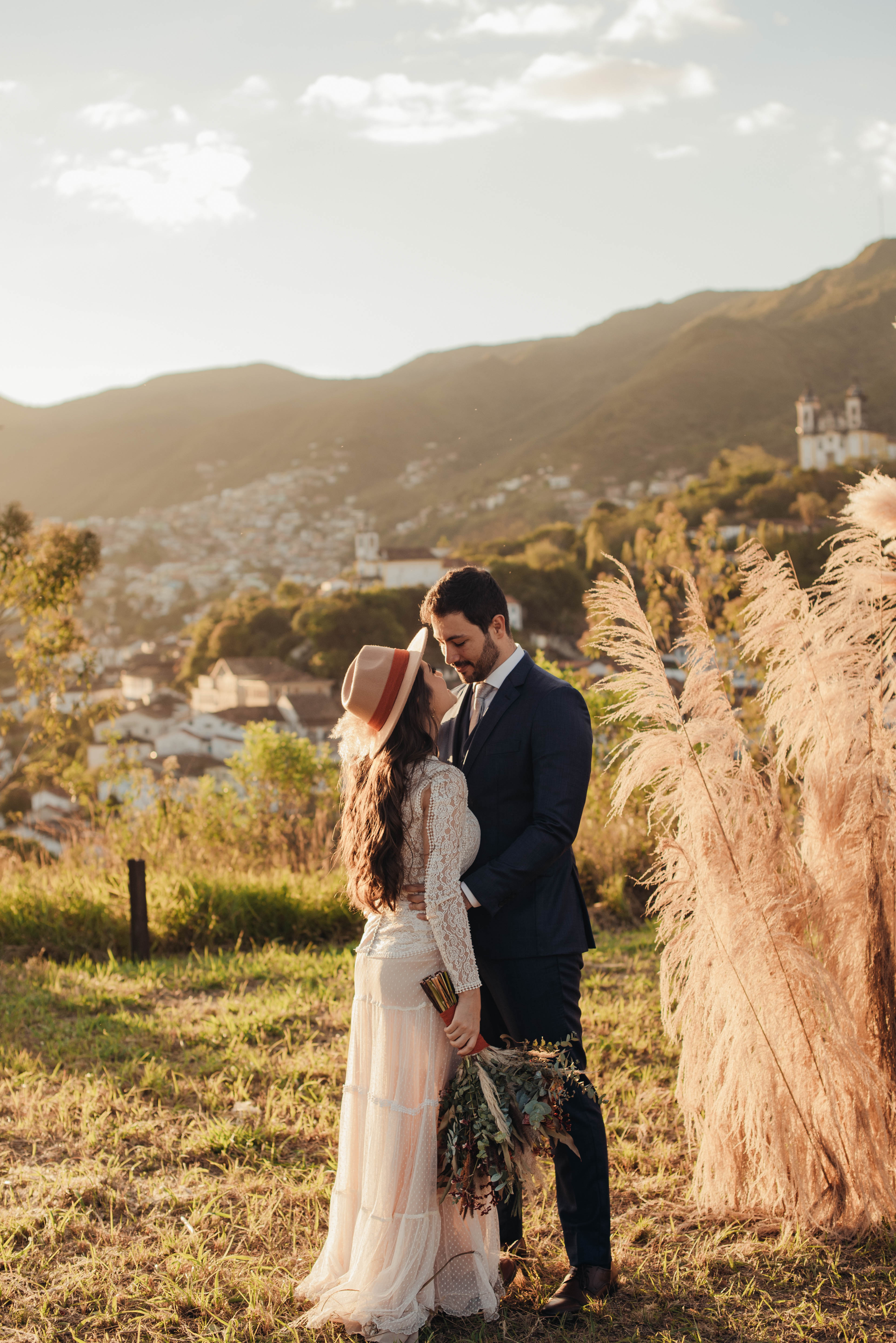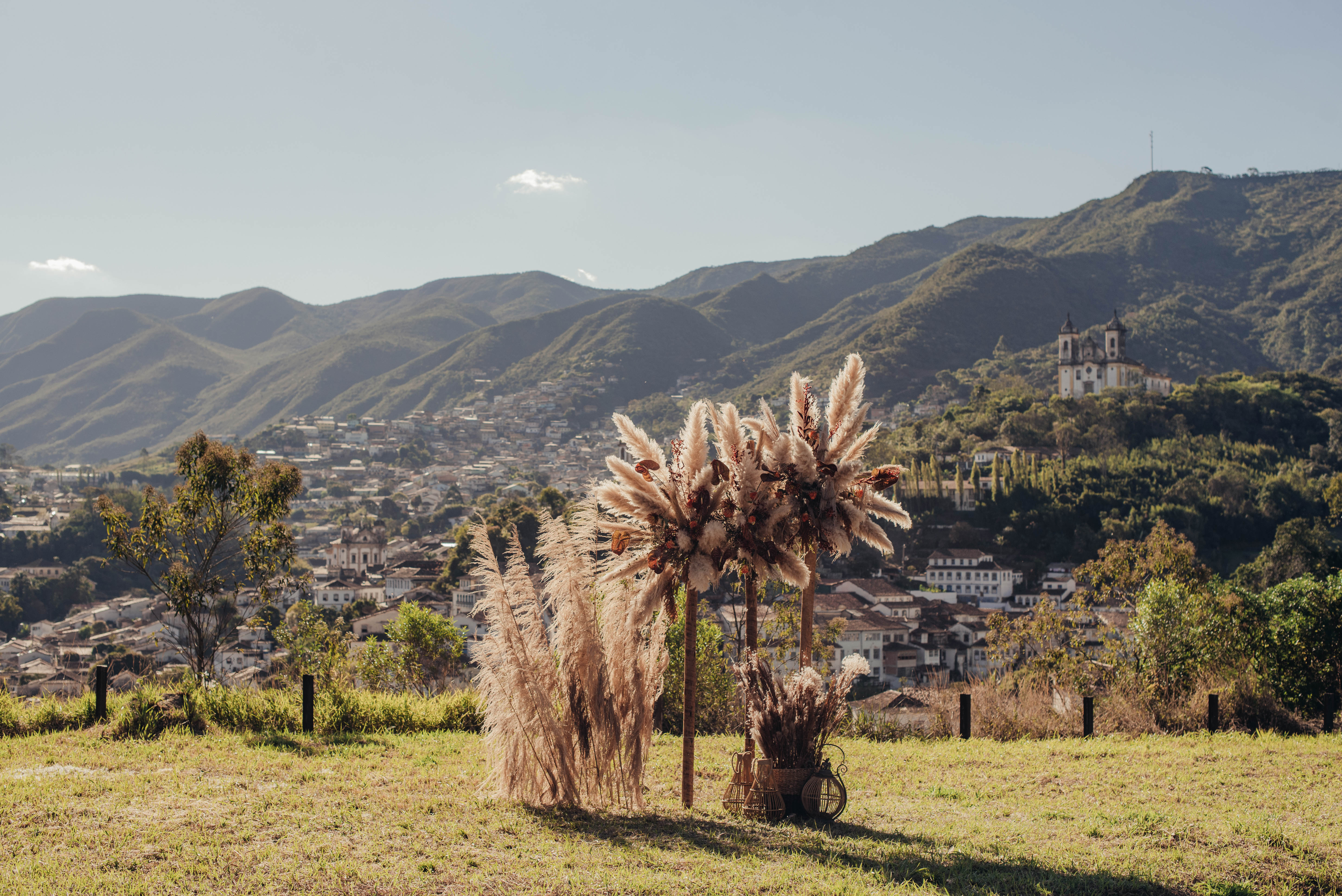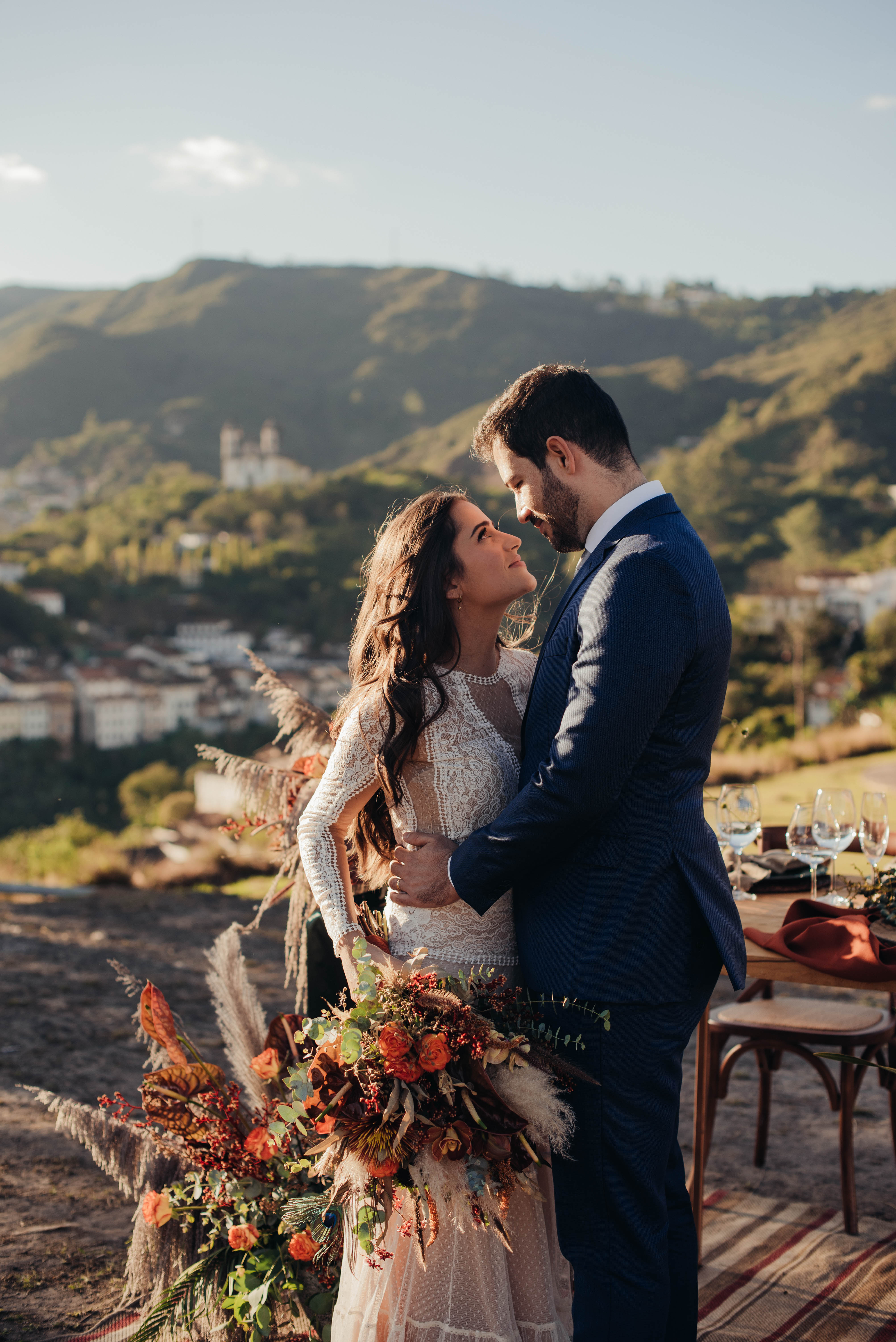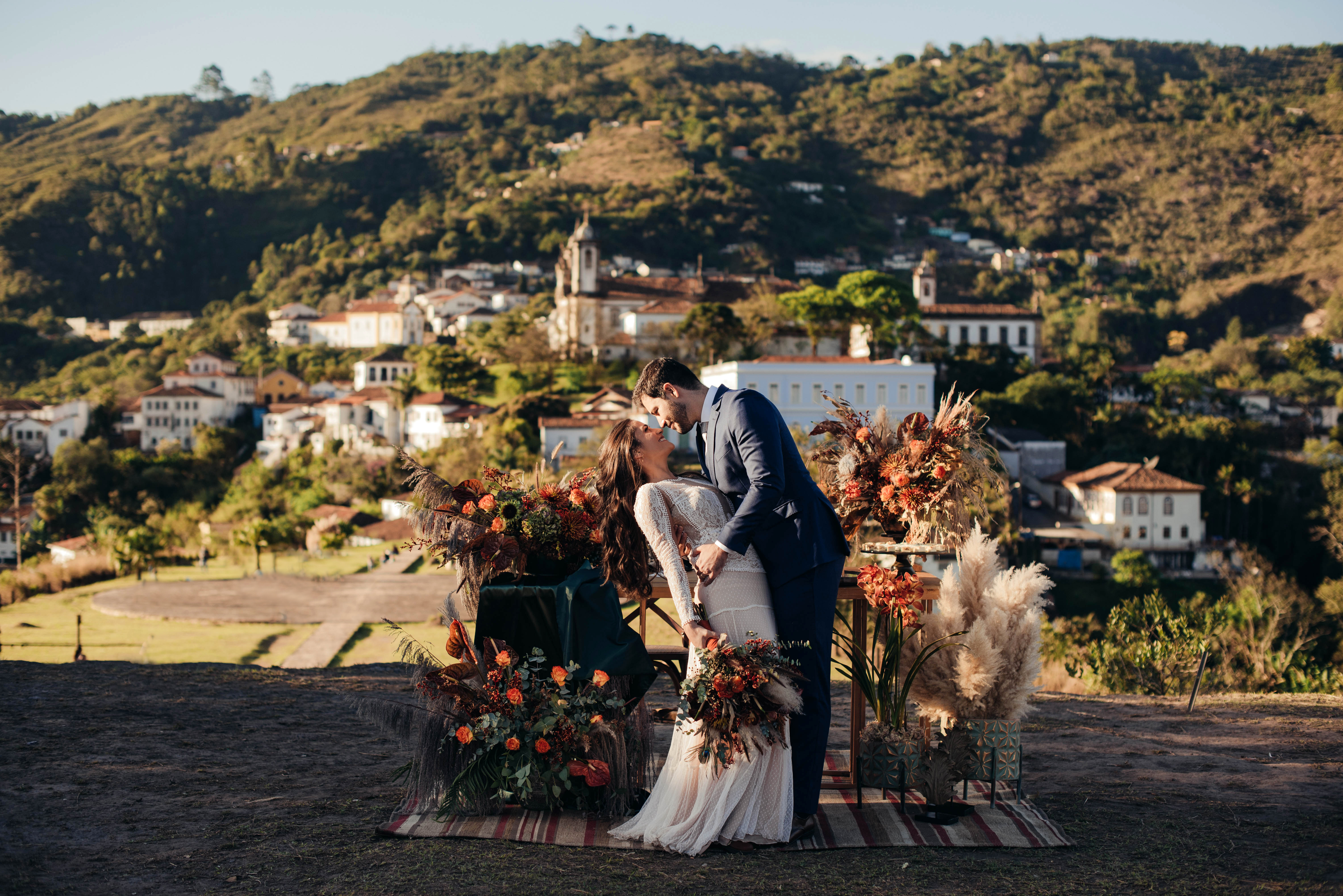 E aí entra a pesquisa e criatividade de uma equipe que trabalhou à distância, mas completamente conectada. A Paula (da Paula Peçanha Fotografia) e o Daniel (da Free Soul Filmes) tiveram um olhar muito sensível, e uma sacada sensacional de indicar o lugar que tem a luz e a vista 360 graus, mais bonita de Ouro Preto: o Morro da Forca.