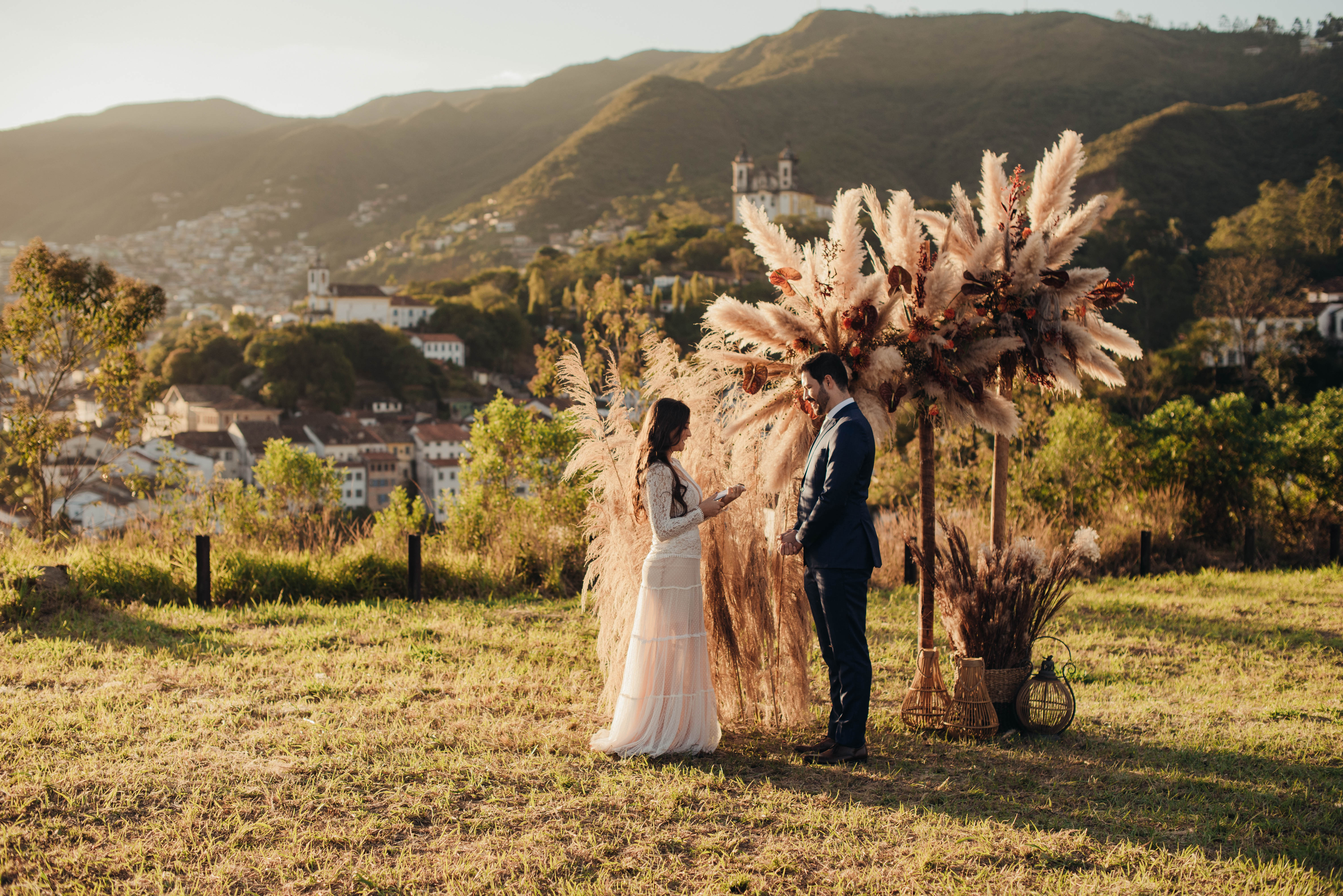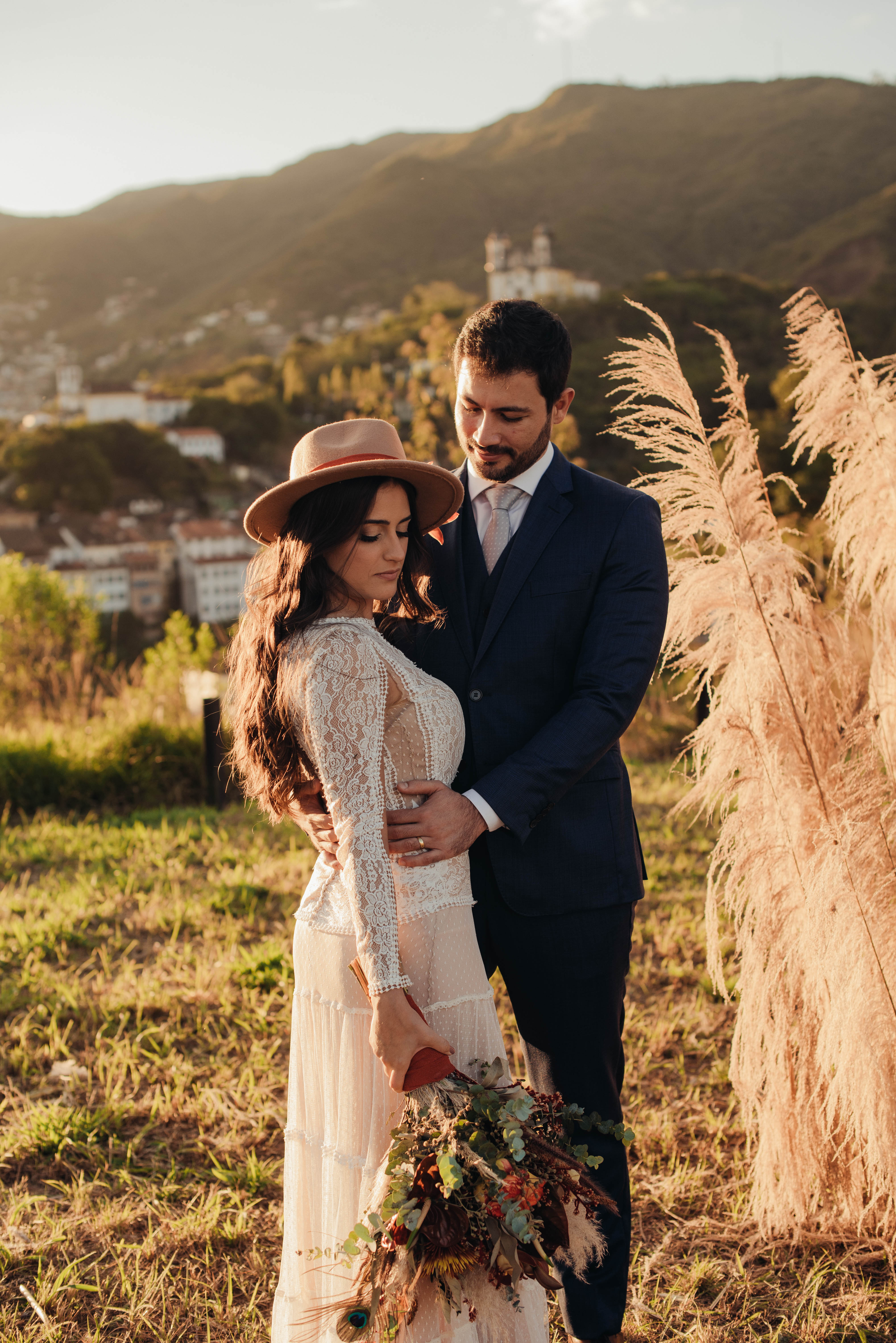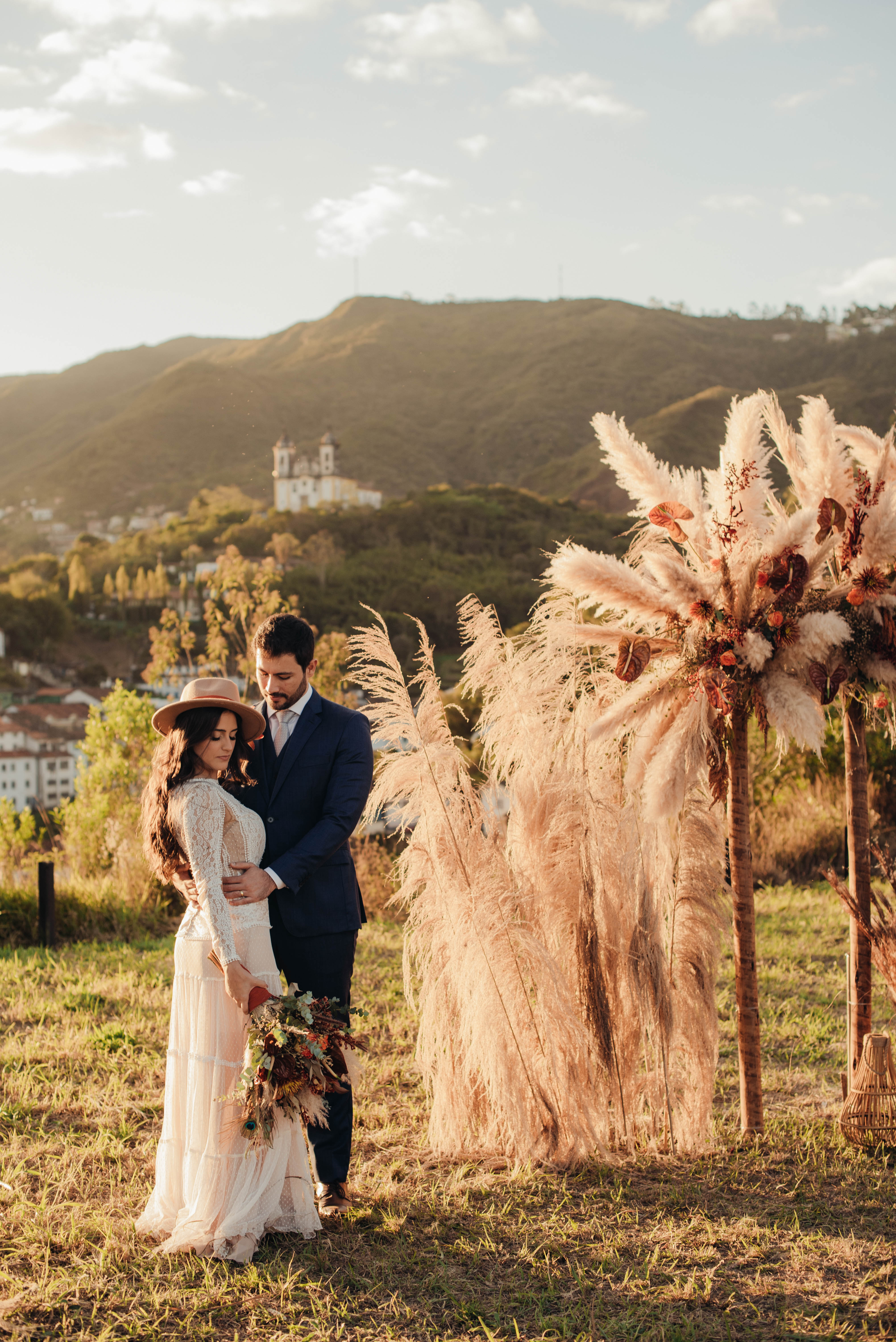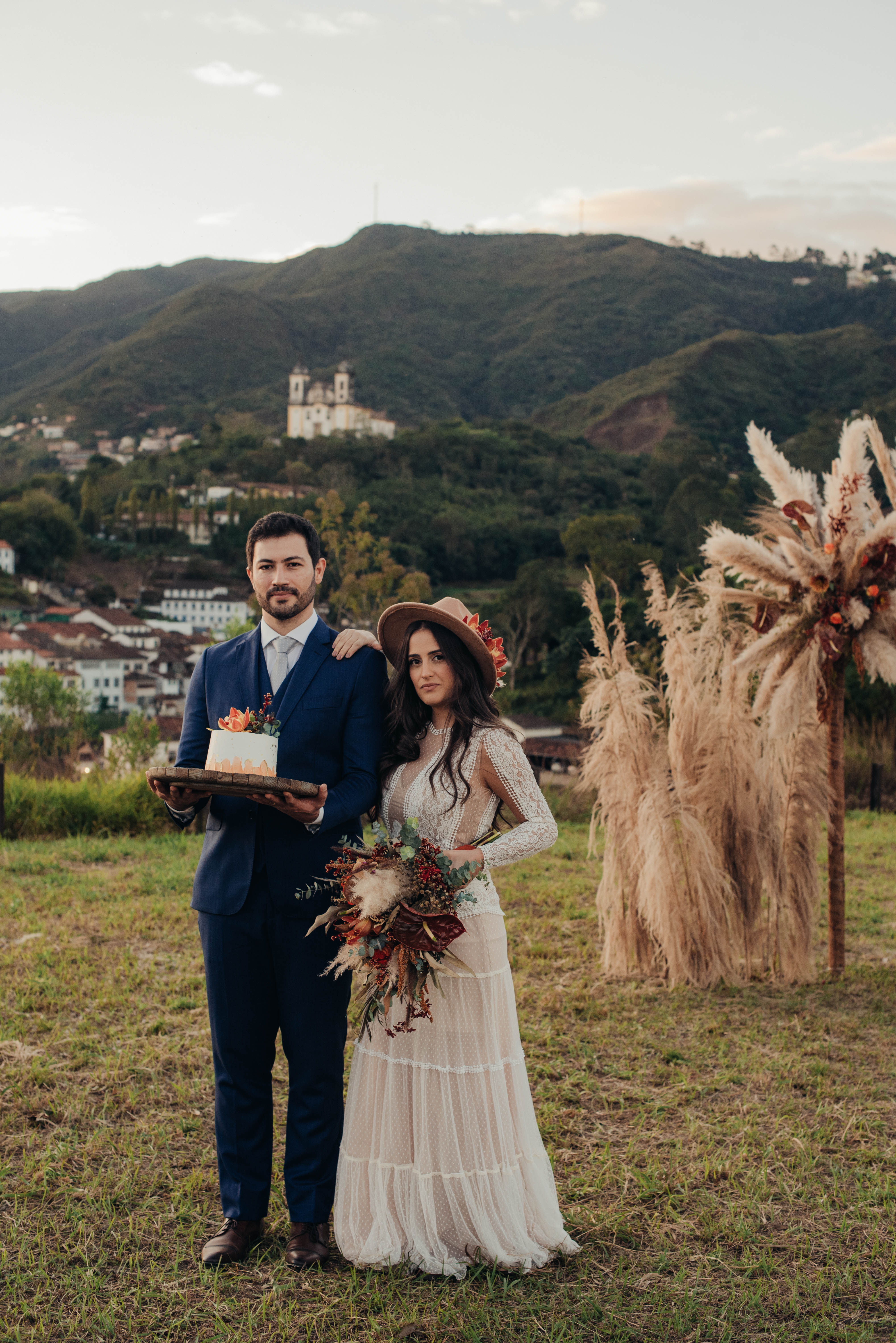 E aí entra a pesquisa e criatividade de uma equipe que trabalhou à distância, mas completamente conectada. A Paula (da Paula Peçanha Fotografia) e o Daniel (da Free Soul Filmes) tiveram um olhar muito sensível, e uma sacada sensacional de indicar o lugar que tem a luz e a vista 360 graus, mais bonita de Ouro Preto: o Morro da Forca.