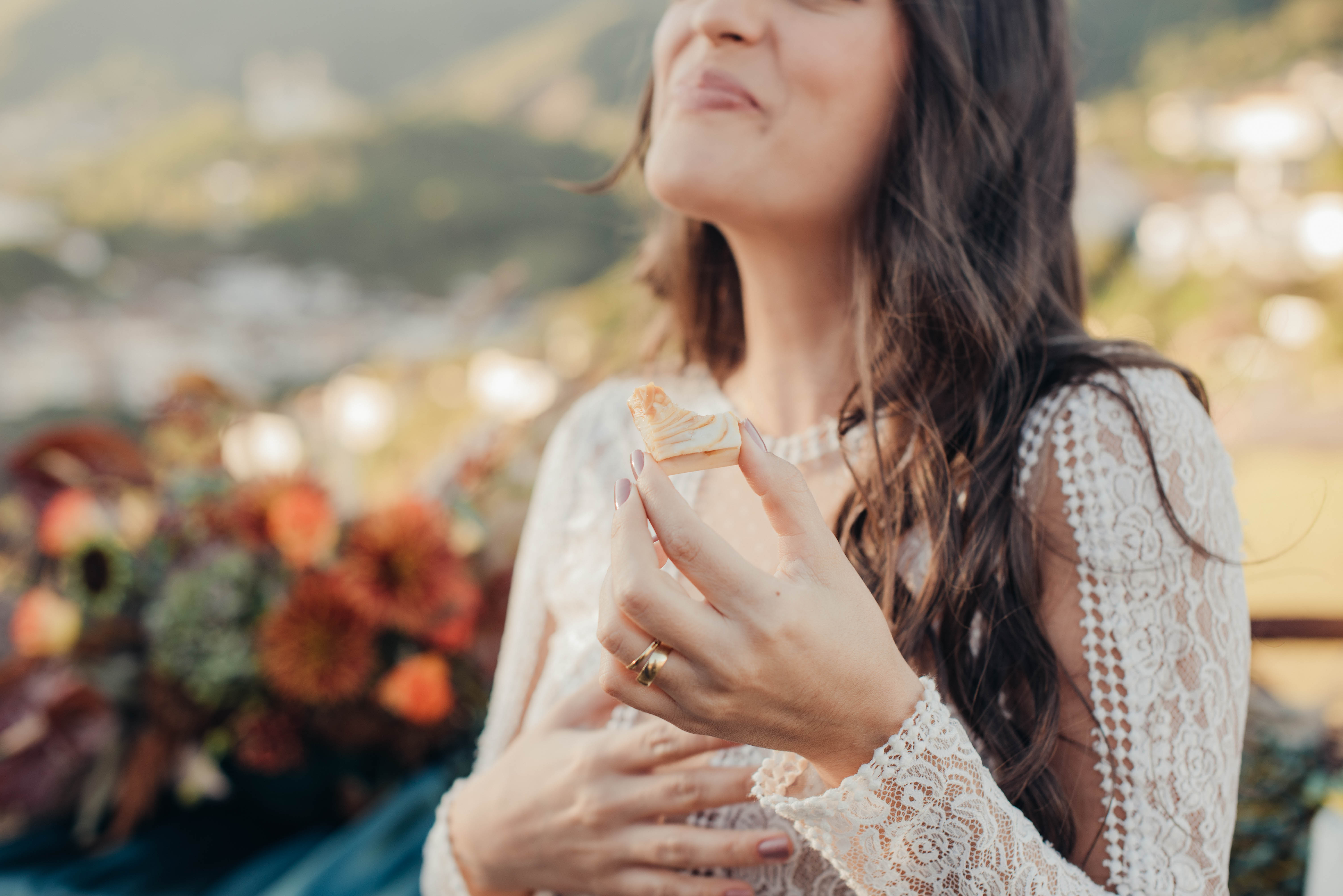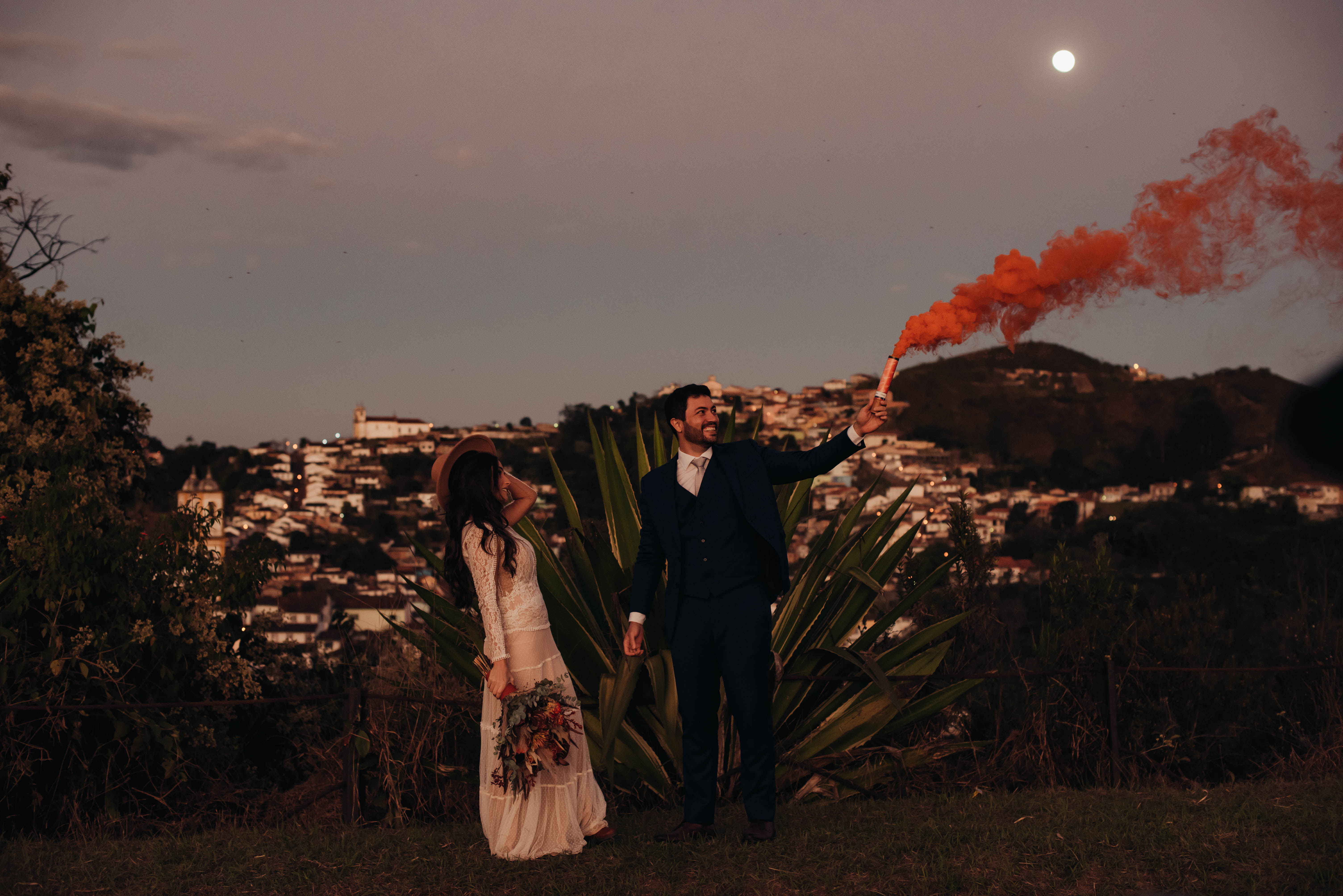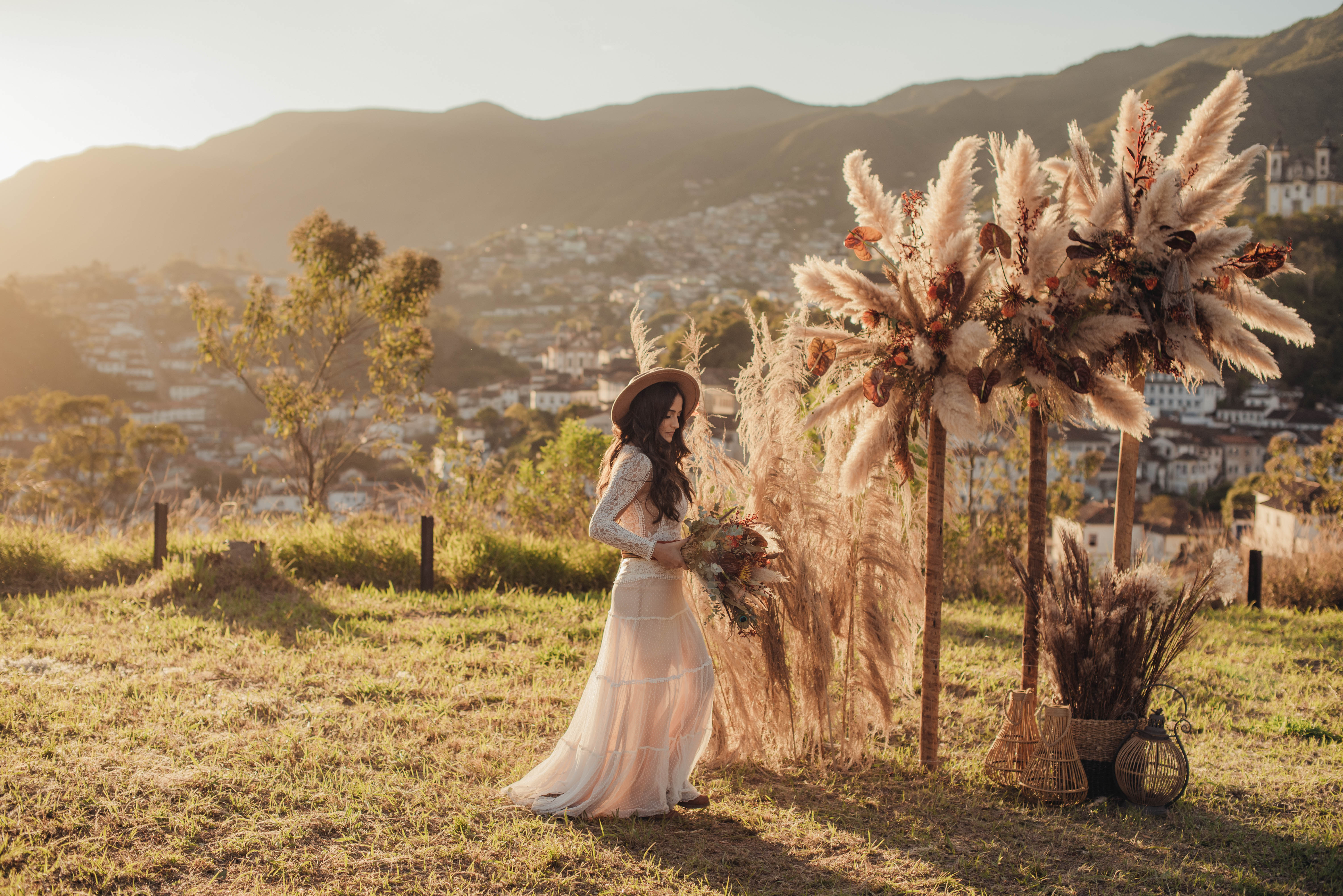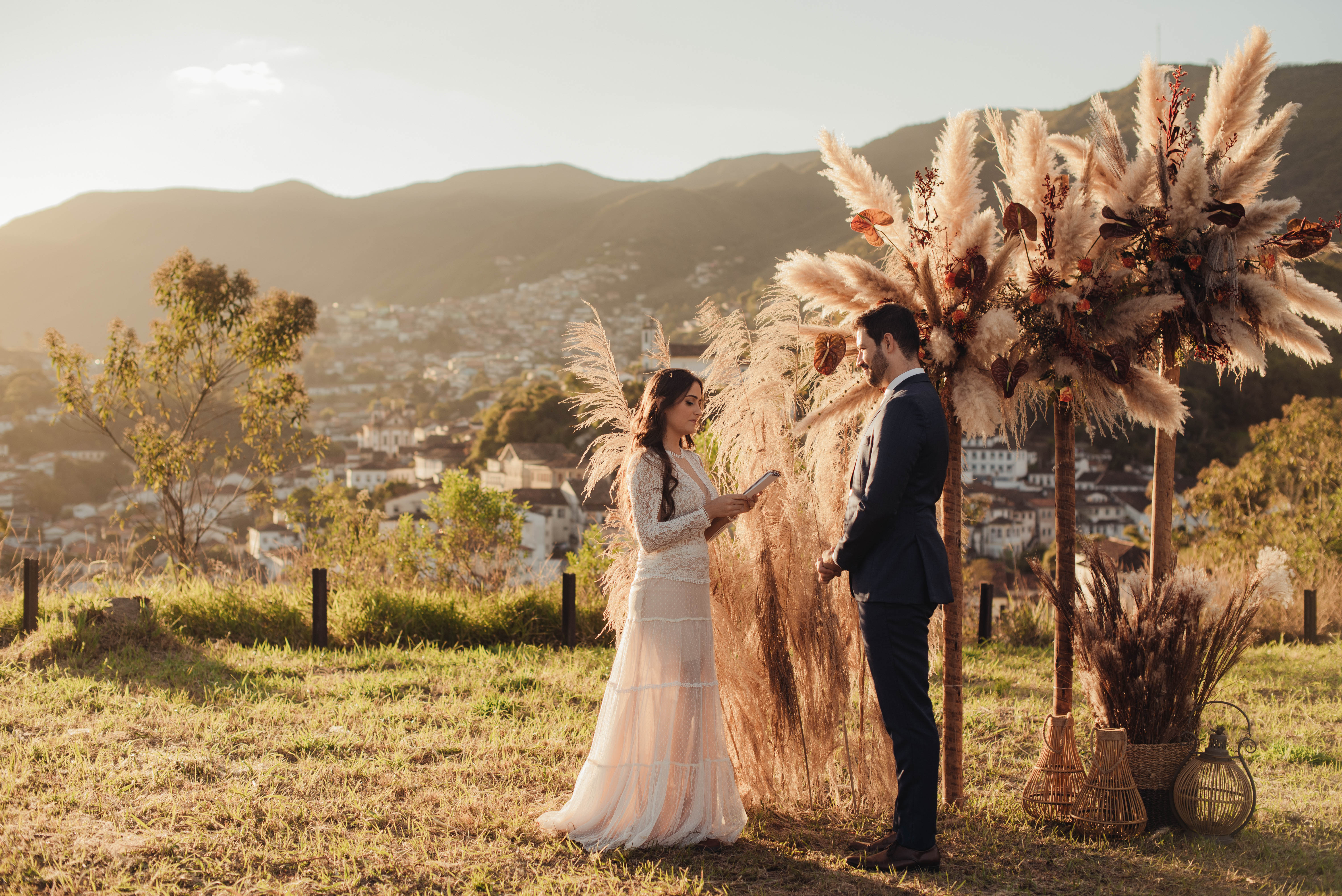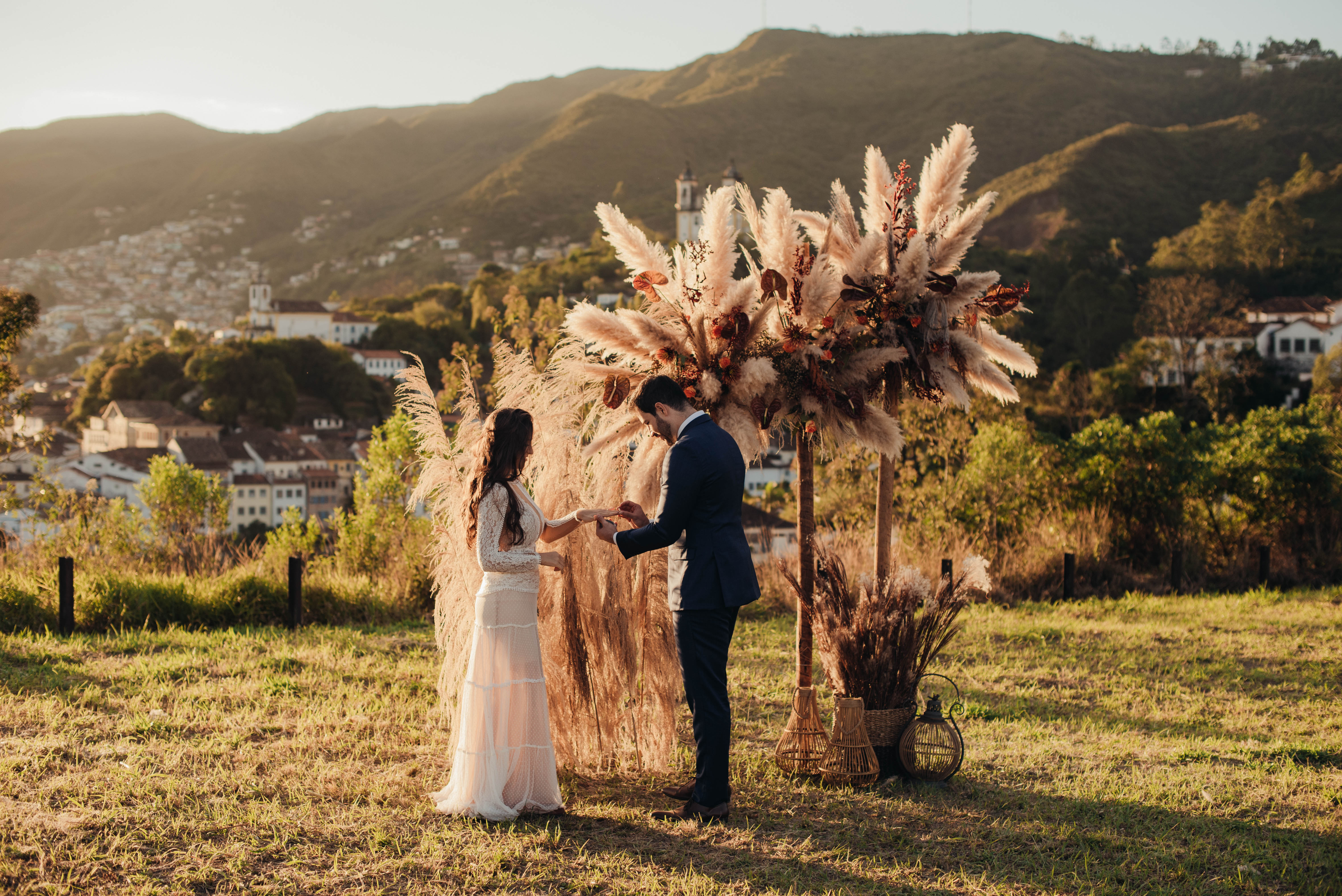 E aí entra a pesquisa e criatividade de uma equipe que trabalhou à distância, mas completamente conectada. A Paula (da Paula Peçanha Fotografia) e o Daniel (da Free Soul Filmes) tiveram um olhar muito sensível, e uma sacada sensacional de indicar o lugar que tem a luz e a vista 360 graus, mais bonita de Ouro Preto: o Morro da Forca.